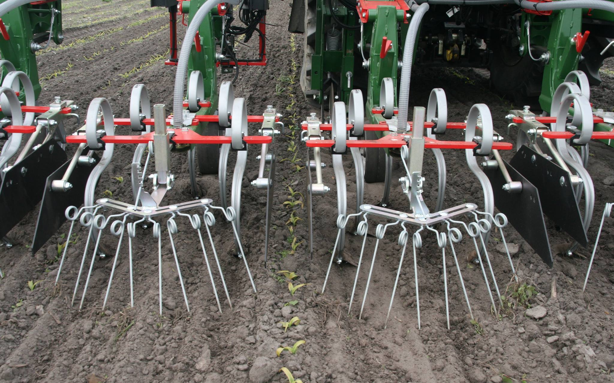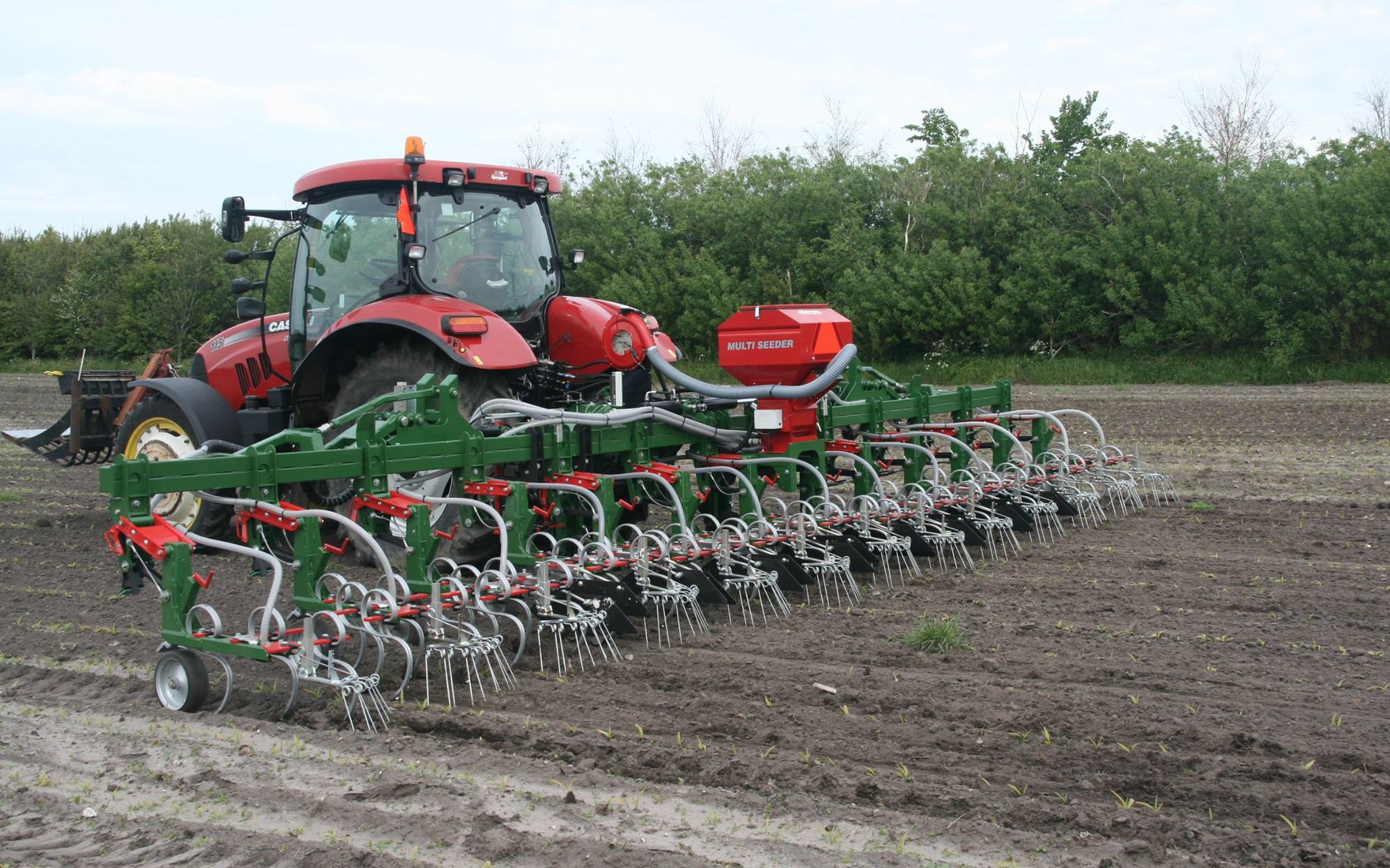 Vi tilbyder majsradrensning på 8 og 12 rækker, samt såning af græs med slæbeskær og trykhjul for og opnå den bedste etablering Der er mekanisk sidestyr på maskinen. Så selv i stærk sidevind kan vi stadig køre problemfrit.