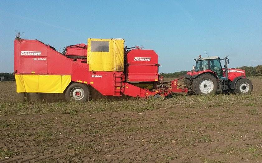Vi tilbyder optagning af kartofler med vores Grimme 170-60 kartoffeloptager. Optageren har hjultræk og er opbygget så den er ekstra skånsom overfor kartoflerne.