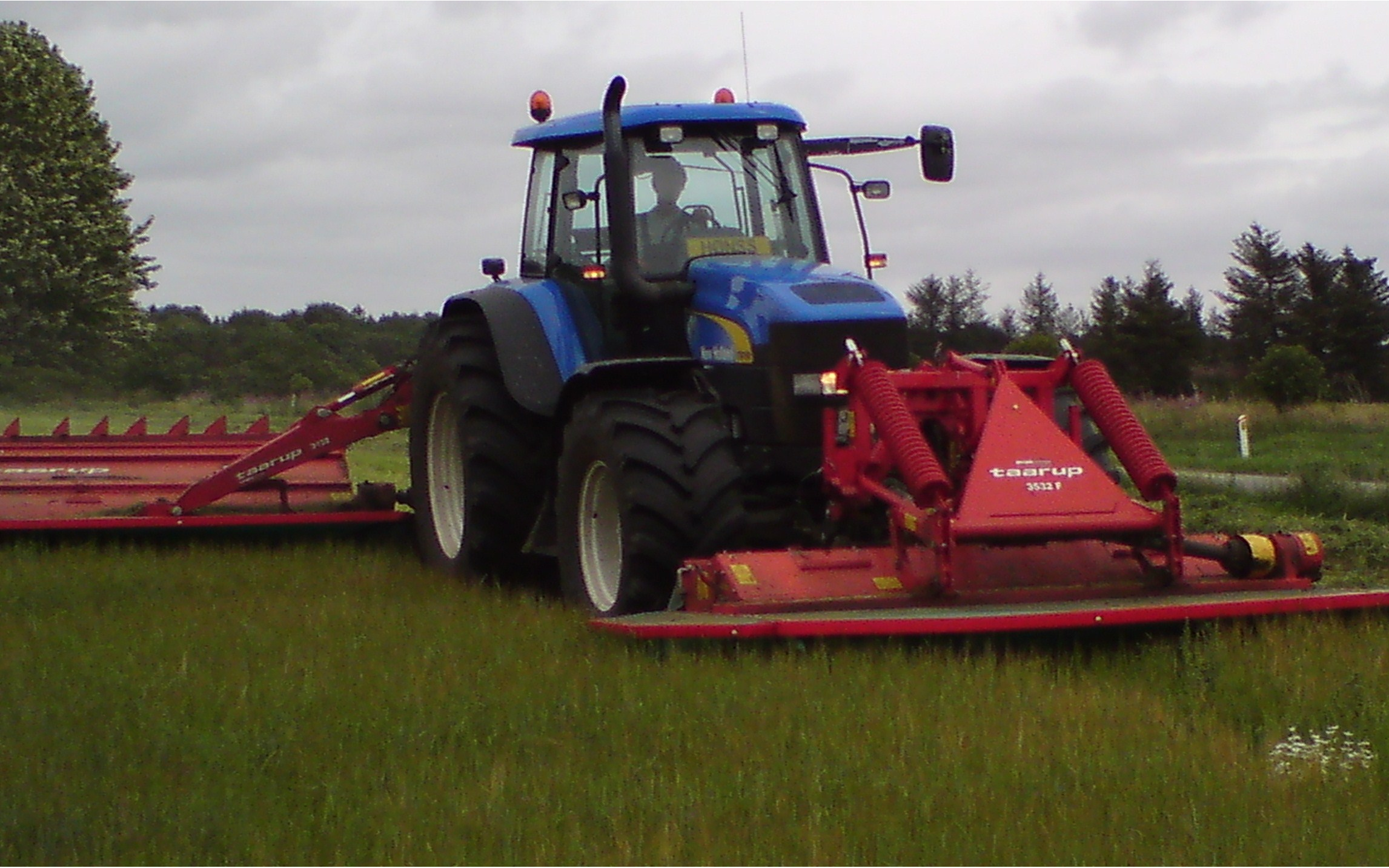 Skårlægning tilbydes med en frontmonteret og en sidemonteret Taarup skårlægger med crimper. alt i alt en arbejdsbredde på 6 meter.