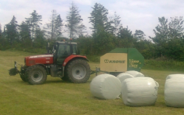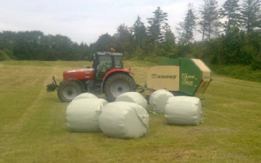 Vi tilbyder presning af rundballer med vores Krone 1800. Vi tilbyder også efterfølgende wrapning af ballerne hvis det ønskes.