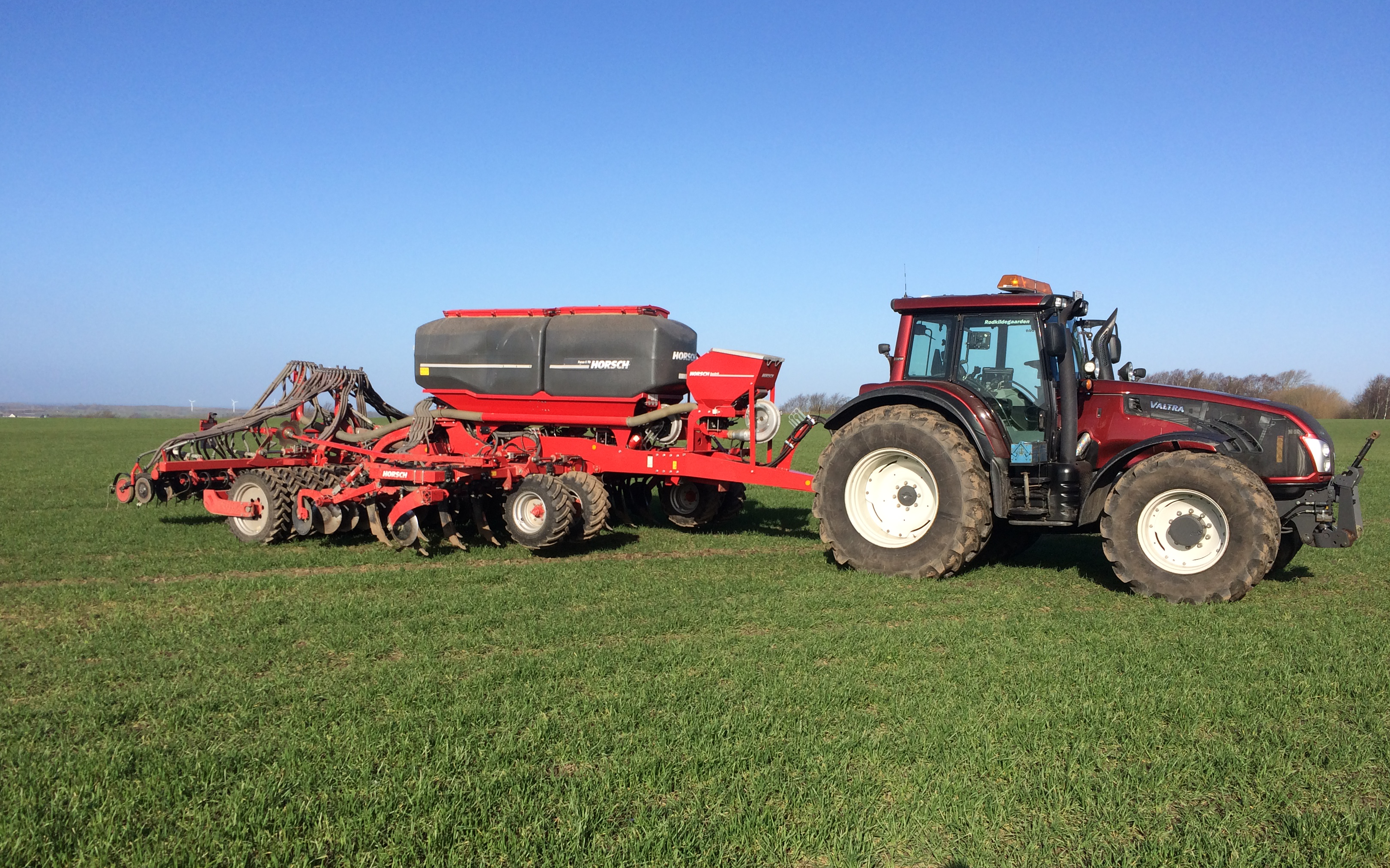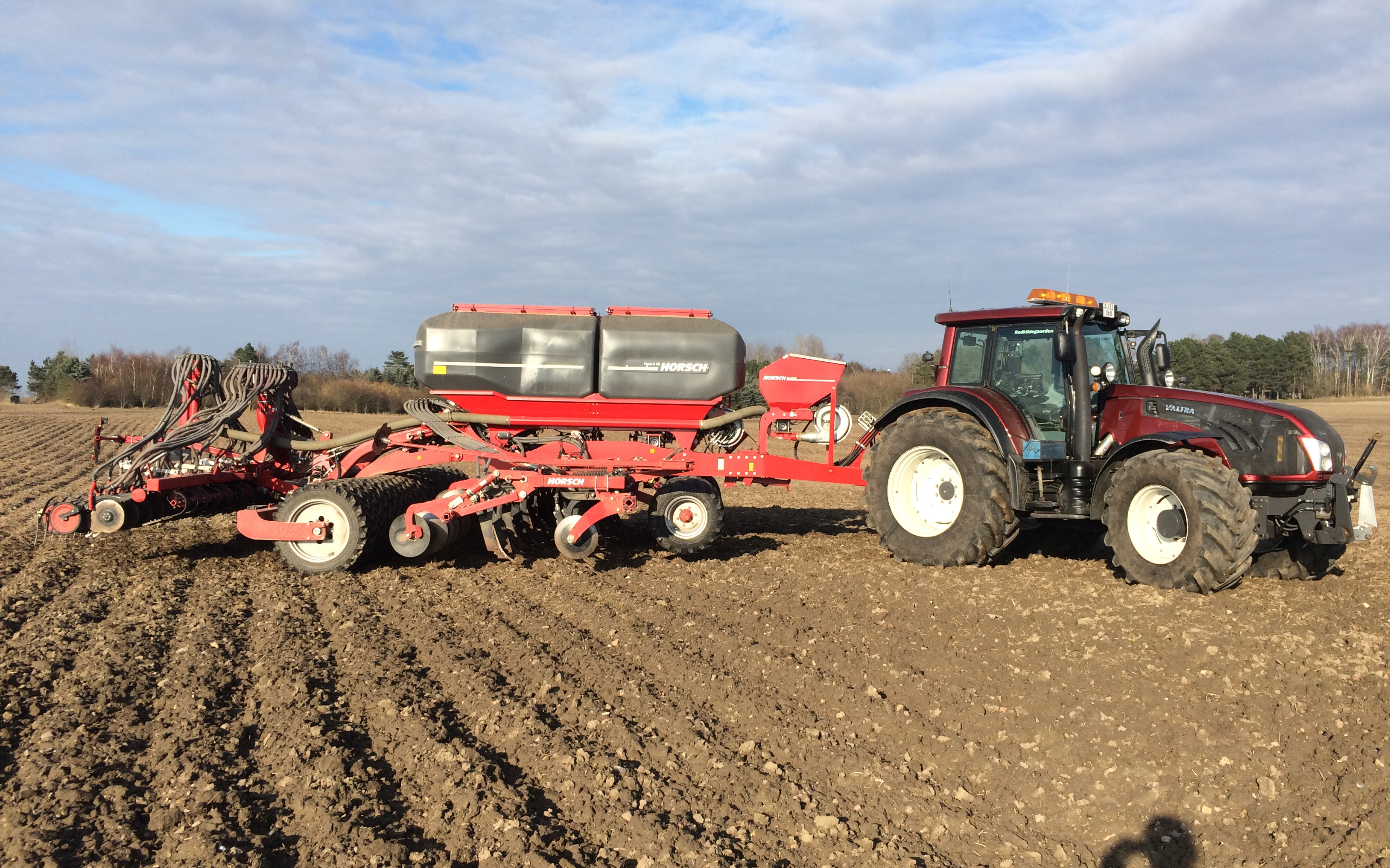 Såning af afgrøder med Horsch Focus 6TD. Kan løsne ned til 35 cm. Der er frø såkasse på den, til udbringning af frøgræs eller sneglekorn. Gødningen kan placeres i to dybder og kan også samsåning med såsæden. Såning af raps med 30 cm række afstand. Såning af korn med 15 cm række afstand. OBS: kan også tilbyde sprøjtning med Horsch Leeb 24-30 meter arbejdesbrede. med en frihøjde på 60 cm under traktor og sprøjte.