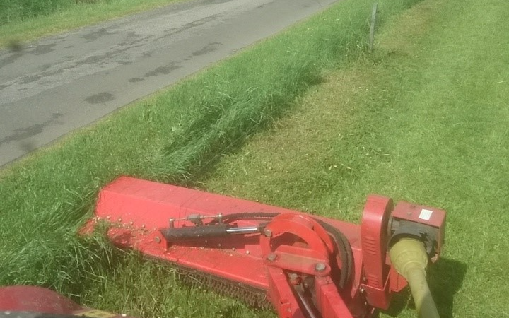 Vi klipper med 180 cm. ideelt til slåning under tråd. Eller afpudsning af marker og enge.