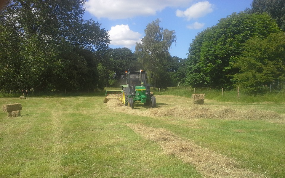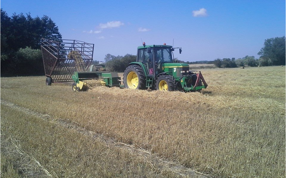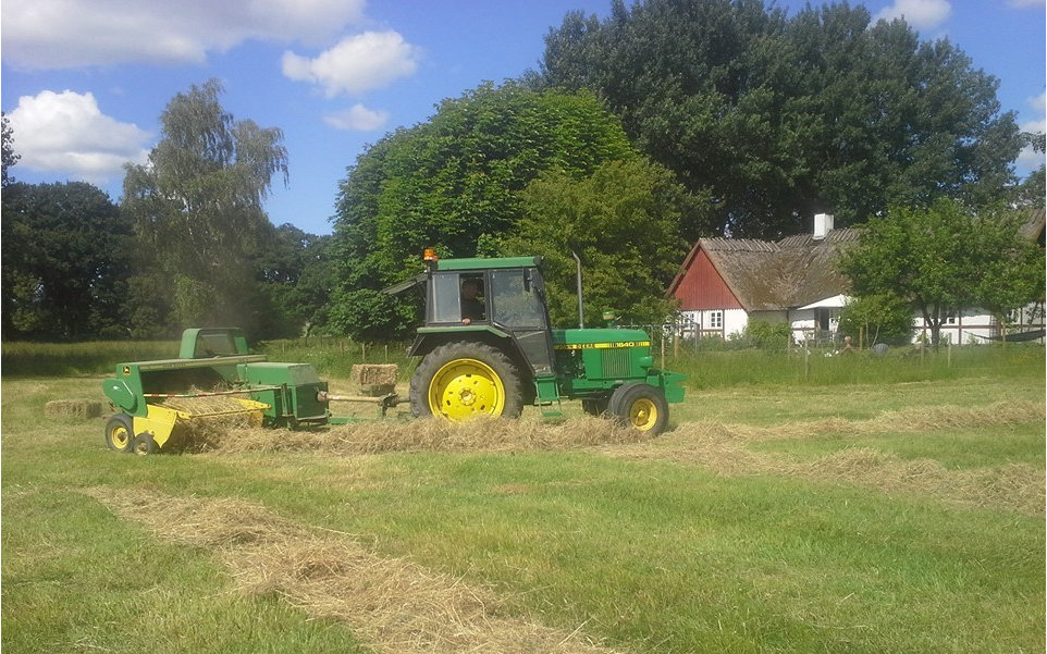 Vi kører ud og presser småballer på Midtsjælland med vores John Deere 1640 spændt for