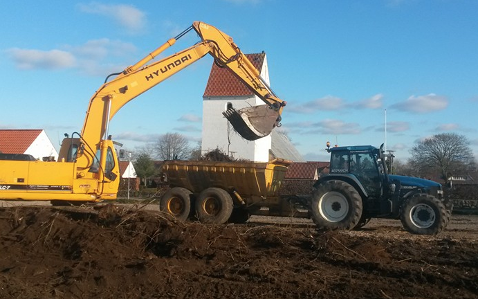 Vi tilbyder kørsel med vores Volvo dumpervogn.