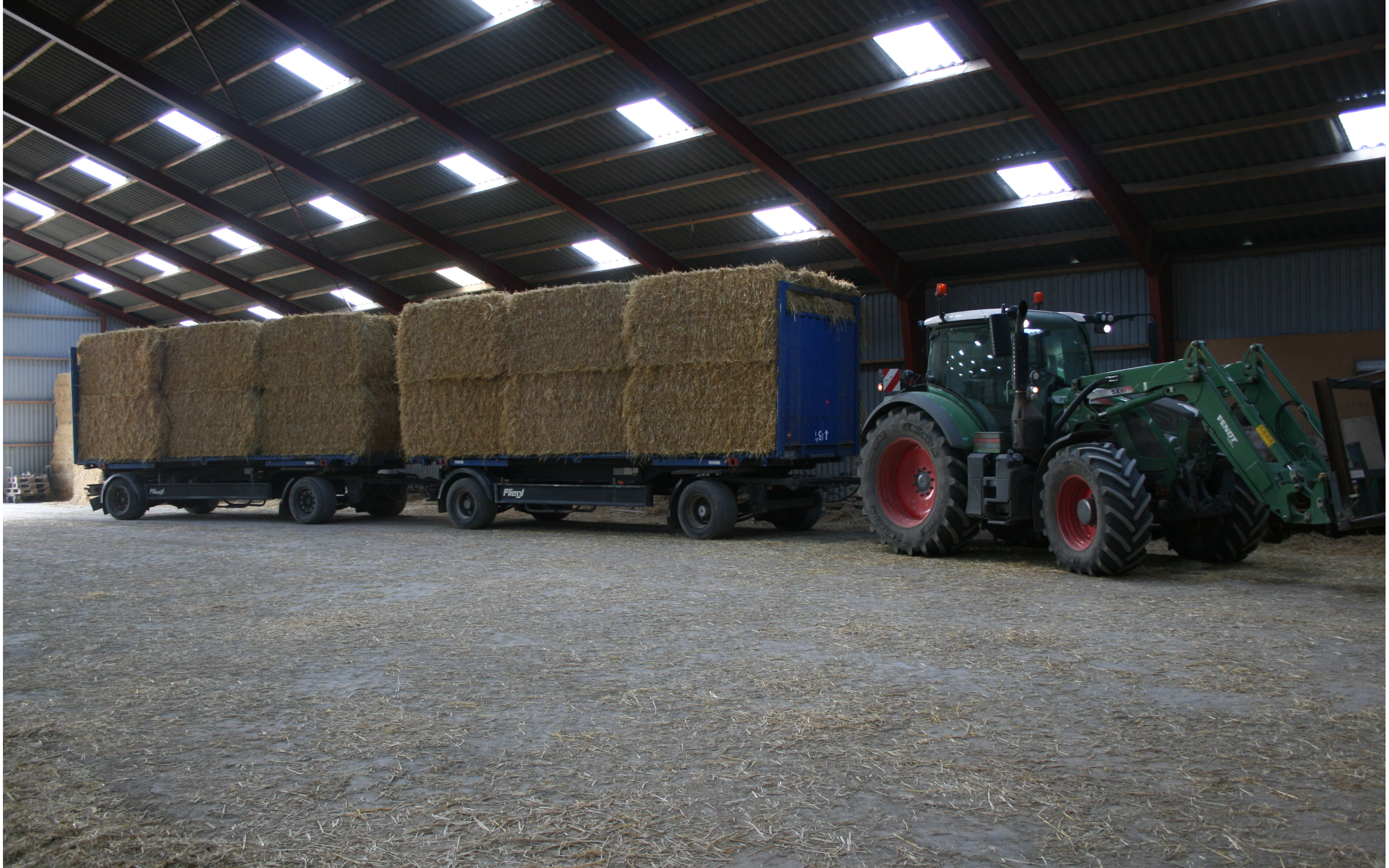 Vi kan hjælpe dig med at få din halm trygt hjem efter det er blevet pressning. Vi har både frontlæsser og vogn til opgaven.