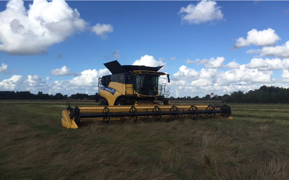 Vi tilbyder mejetærskning af alle typer afgrøder med vores New Holland CR 10.90. Den har et skærebord på 12,5 meter med rotor. Der udføres ligeledes pickup til skårlagt raps og frøgræs.