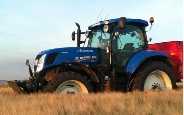 Vi udfører såning af mellem og efterafgrøder med vores Kuhn luftmaskine. Spredningen er på 24 meter og doseringen er yderst præcis. traktoren er monteret med sprøjtehjul.