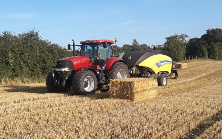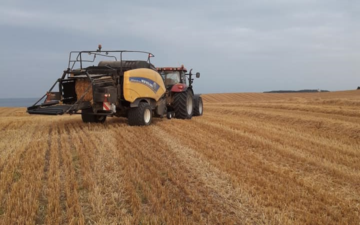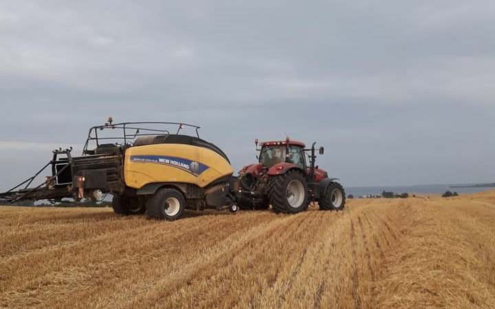Presning af medibigballer, 120x90 cm udføres med New Holland 1290 PLUS Cropcutter. Der er mulighed for at få snittet halmen.