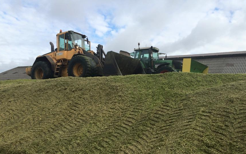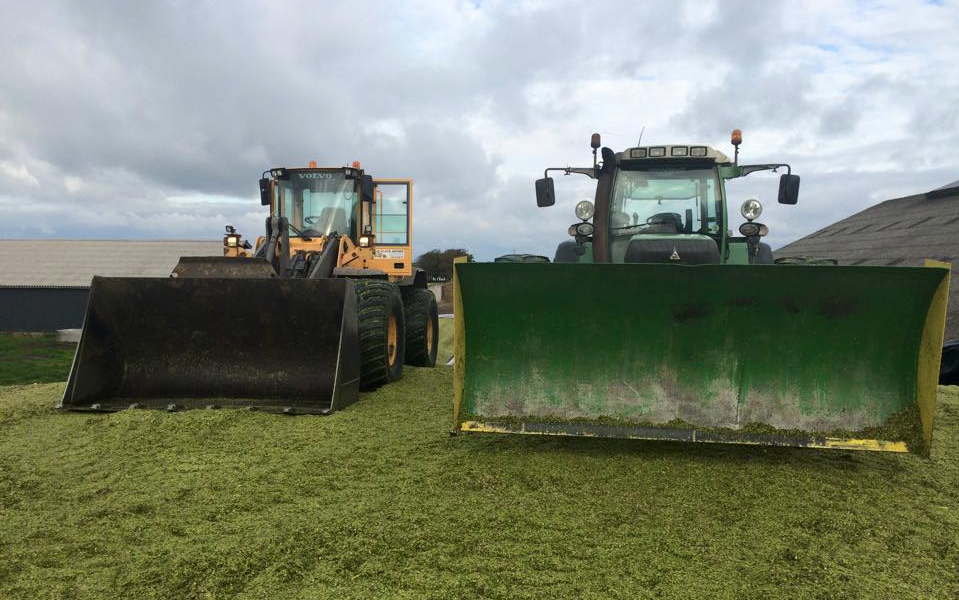Udover stakkørsel med gummiged, tilbyder vi også stakkørsel med traktor med påmonteret dozerblad.