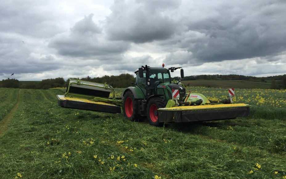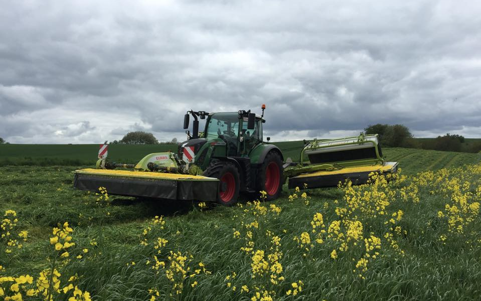 Vi tilbyder skårlægning med 2 stk. Claas Disco 9100 Butterflys skårlæggere. De har et vingefang på hver 9 meter.