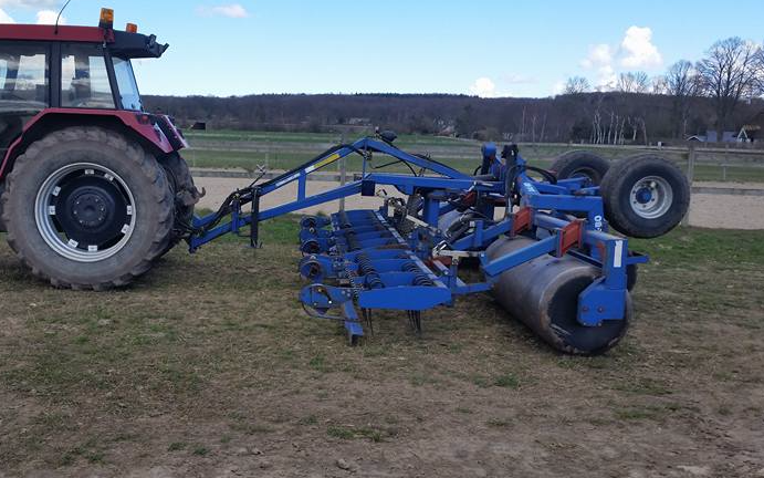 græsmarks trommel med muldvarpe jævner og strigle der styres hydralisk. velegnet til tromling af slæt og frøgræsmarker om foråret,