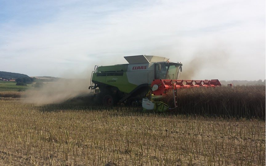 Vi tilbyder mejetærskning af alle afgrøder med vores Claas Lexion. Den har et skærebord på 30 meter og kører på bælter.