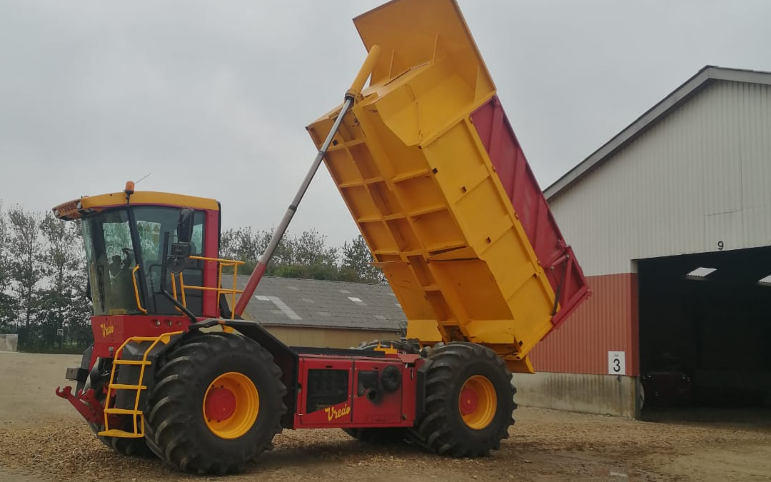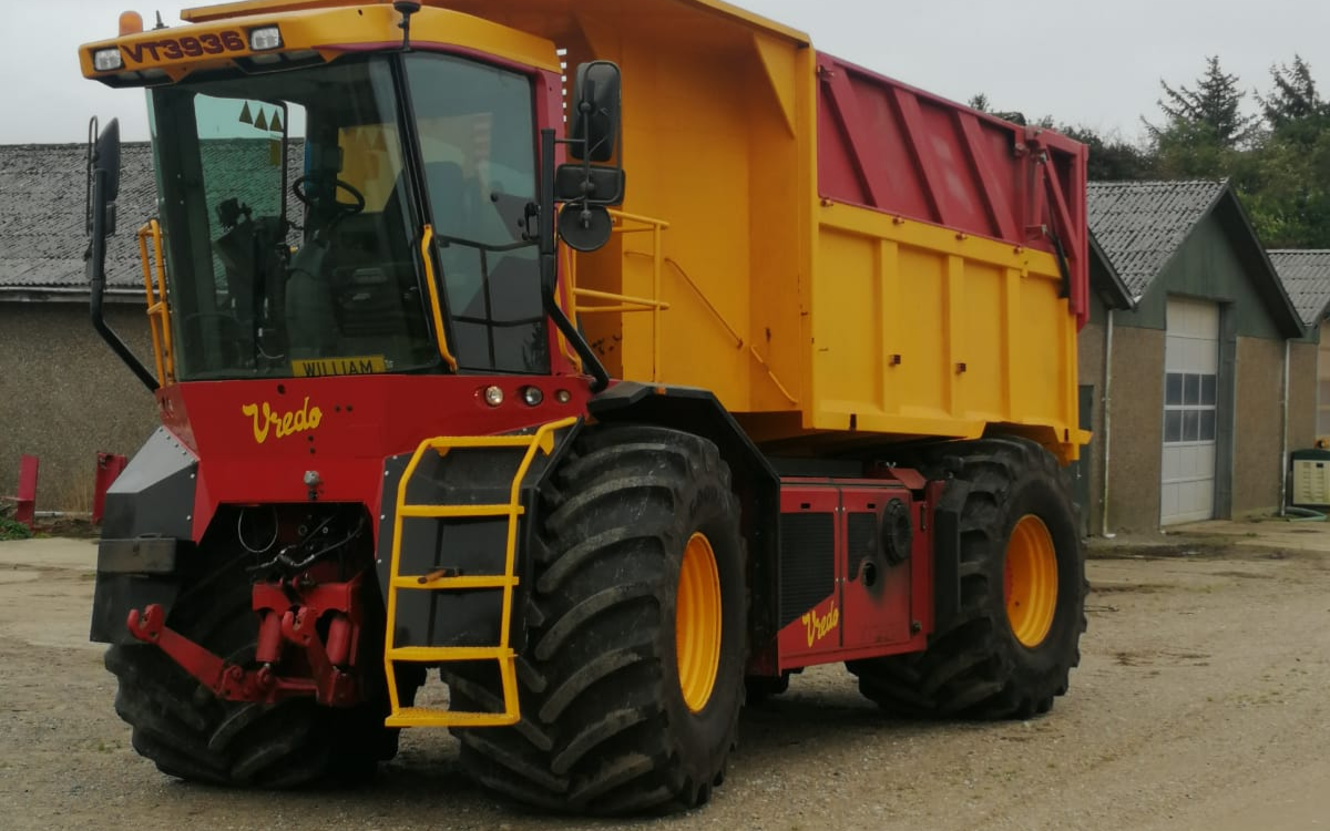 Vredo 4x4 kan køre på de bløde område med majs,jord, træflis mm. Øverste del kan tages af, så den kan læses fra siderne.
