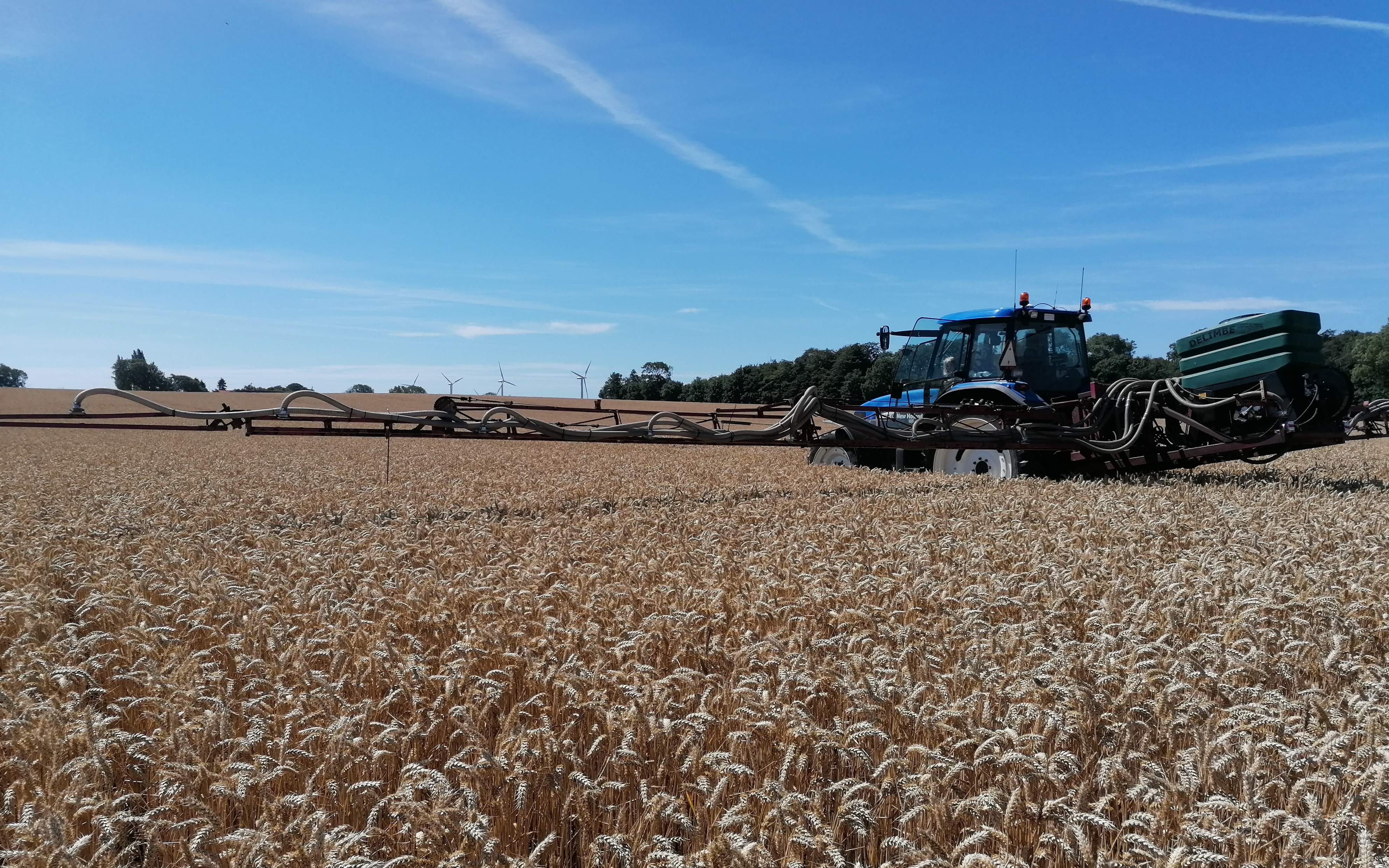 Såning af efterafgøder før høst. Arbejdsbredde op til 24 m.