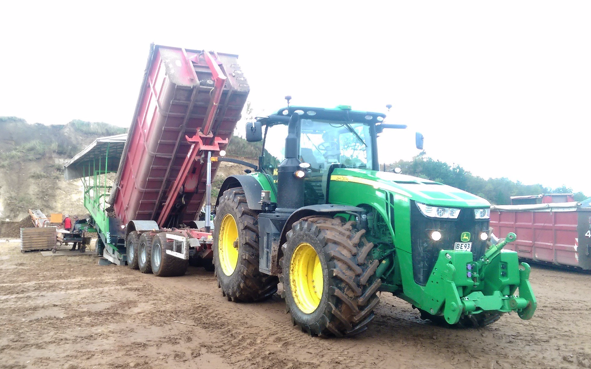 Vi har flere containervalgmuligheder til vores kroghejsevogn. Vi kører meget med vores entreprenør container, hvor bund og sider er lavet af hardox stål. Vi har 4 kartoffelkasser med presenning, der kan bruges til korn, frø, kartofler, grøntsager. Kroghejsevognen er 3 akslet og med brede Michelin CargoXbib hjul.