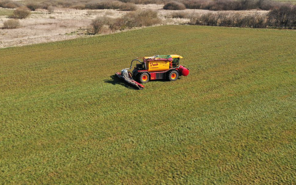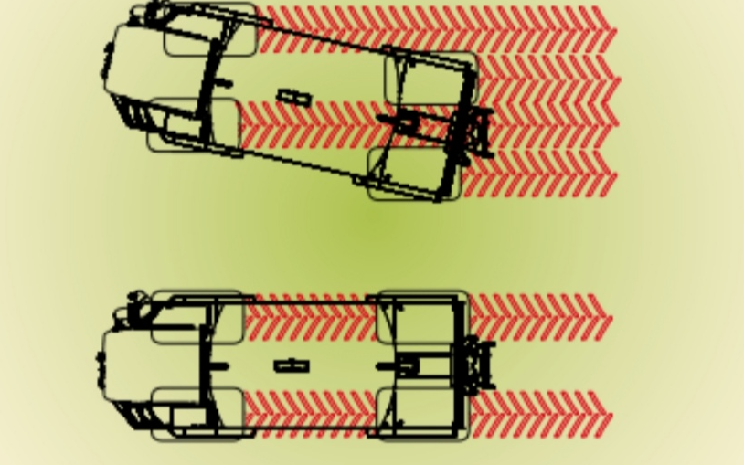 Maskin køre i krabbe-gang og har træk på alle hjul. Så ingen spore i marken og 14 dagen tidligere i gang end de andre.