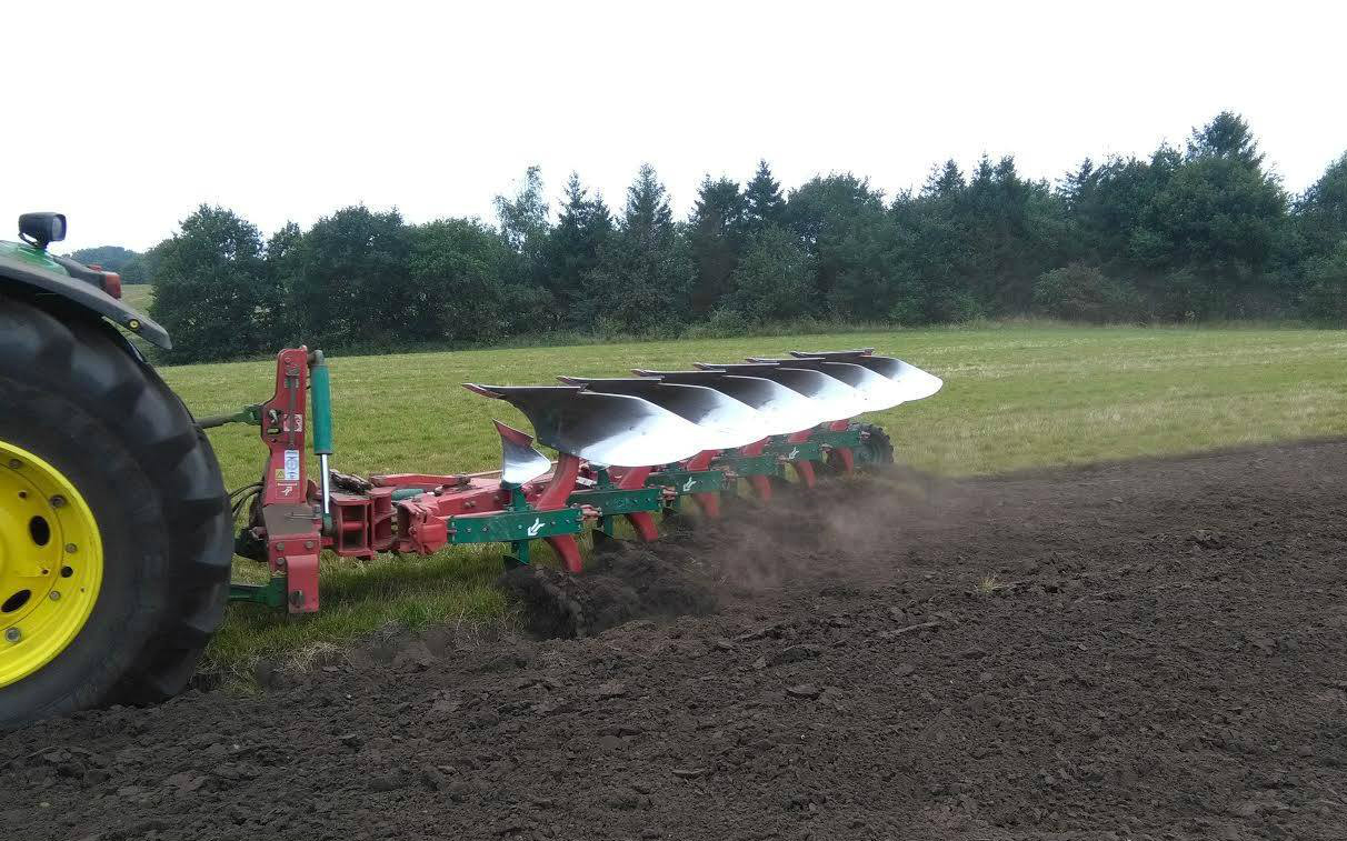 Vi tilbyder pløjning med vores 6 furet Kverneland EG100 plov. Ploven er professionelt indstillet og levere et fantastisk stykke jævnt arbejde og forplovene sikre at alle planterester er lagt helt ned i bunden af fugen, hvor genspiring af planterester reduceres til stort set ingenting. Tilligemed er den ny-etableret af afgrødes rødder upåvirket i den spæde start, hvor afgrøden er meget sart overfor syredannelsen fra planterester. Hydraulisk landhjul - så fure i forager reduceres kraftigt, og nemt kan jævnes med en enkelt overkørsel.