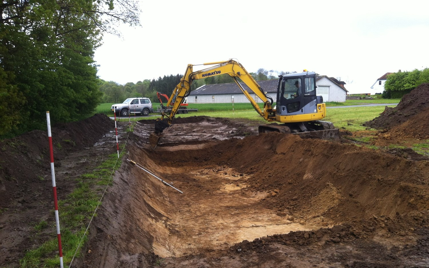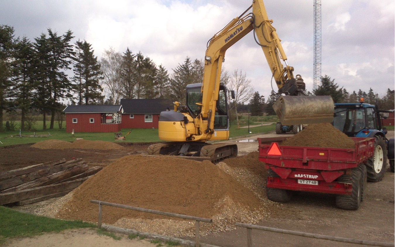Som det kan ses på billederne, så udfører vi alle typer opgaver med vores gravemaskine. Heribalndt, udgravning til grund, etablering af søer, nedbrydning, rydning af grønne arealer og udgravning til dræn.