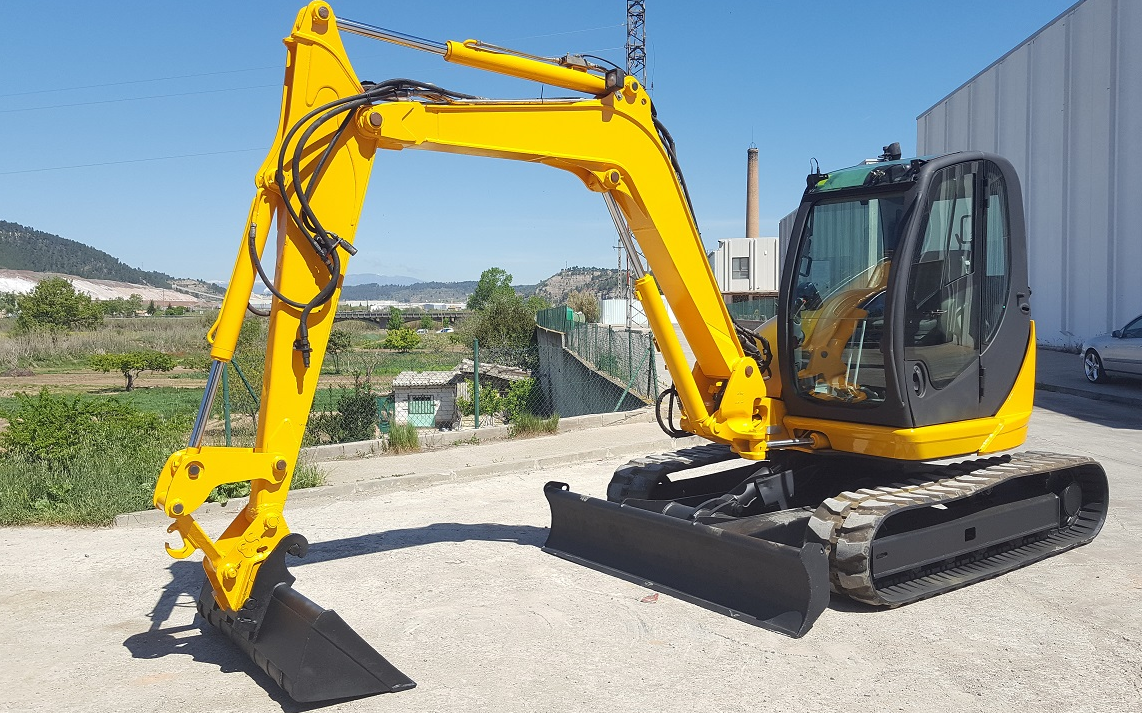 8T gravemaskine udlejes med effektiv fører, inkl. kipbar planerskovl, risteskovl samt div. graveskovle.