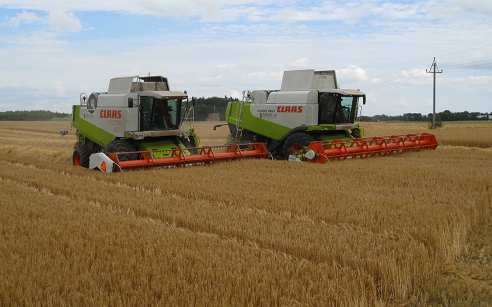 Vi tilbyder mejetærskning med 3 stk. Claas Lexion. De har skærebord på 24-30 fod, snitter og avnespreder. Sideknive kan ligeledes monteres ved direkte høst af raps.