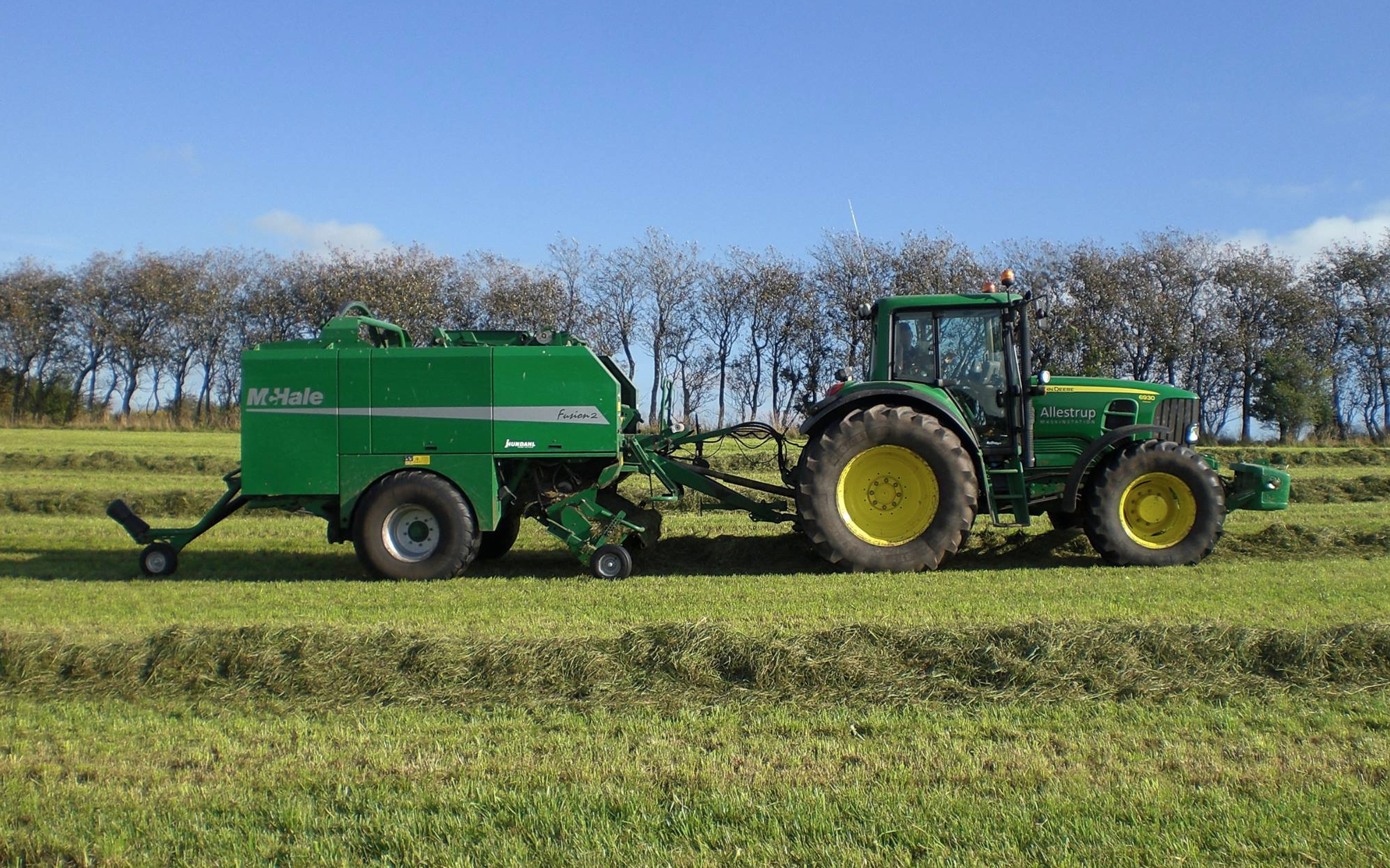 Vi tilbyder presning og wrapning af græs og helsæd i én arbejdsgang med vores McHale Fusion.