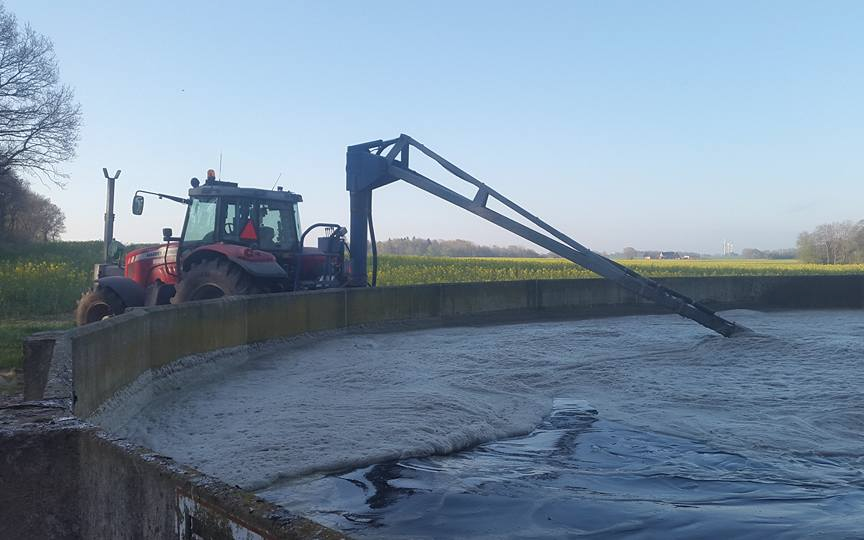 Vi udfører omrøring af gylle med vores Ørum 1200. Der kan tilsættes syrer ifm. omrøring.