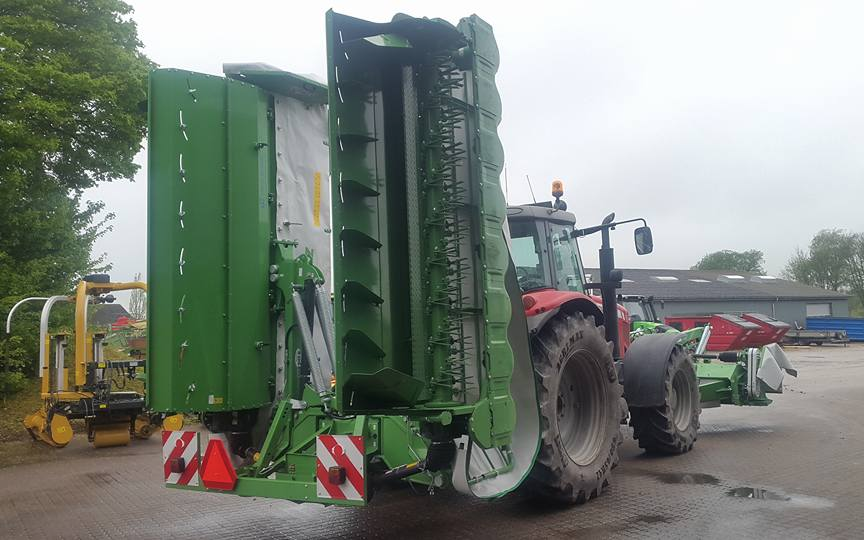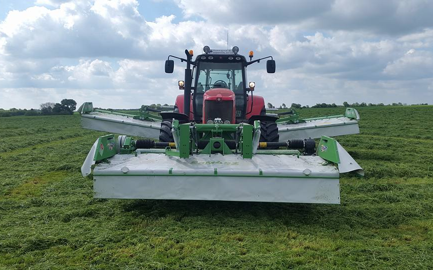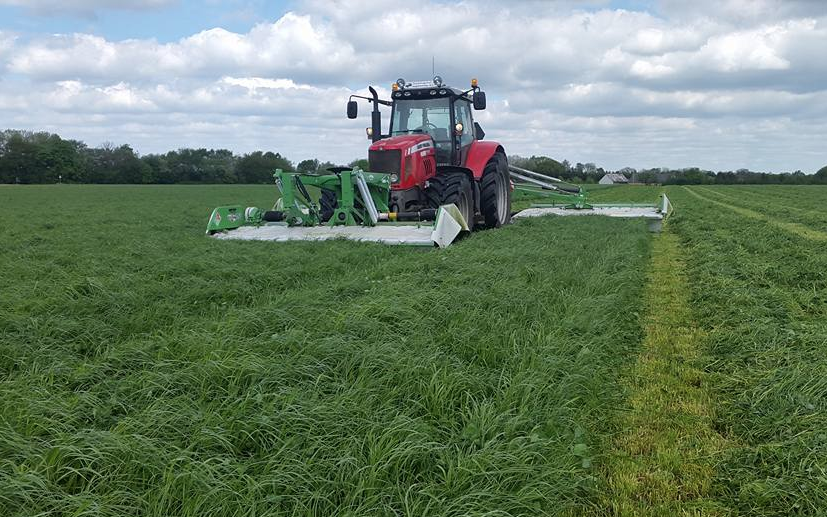 Vi tilbyder slåning af græs med vores 9,5 meter slåmaskine. Afhængig af forholdenen kan vi nedlægge op til 10 hektar i timen.