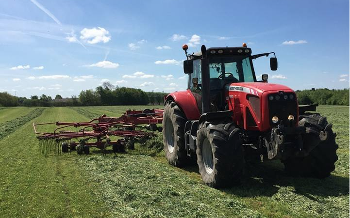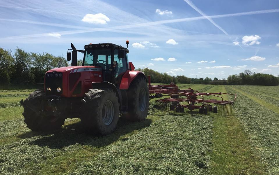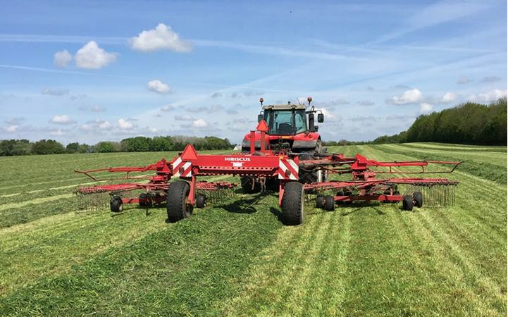 Vi tilbyder rivning af halm og græs med vores 10,5 meter Lely rive.
