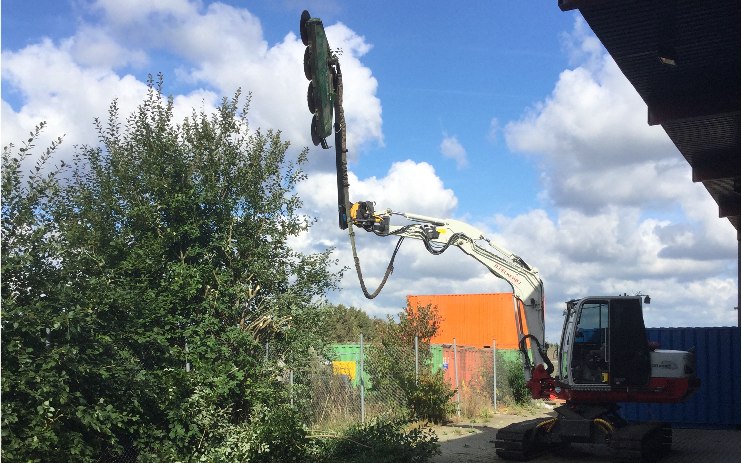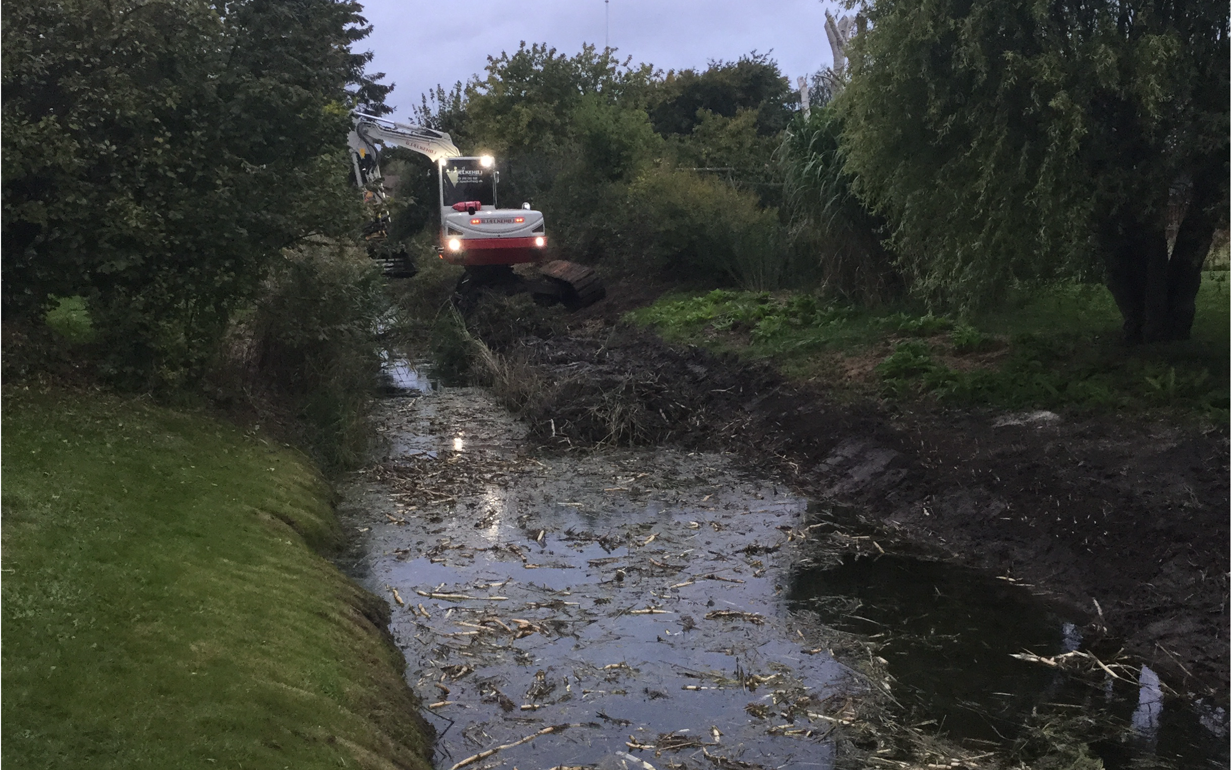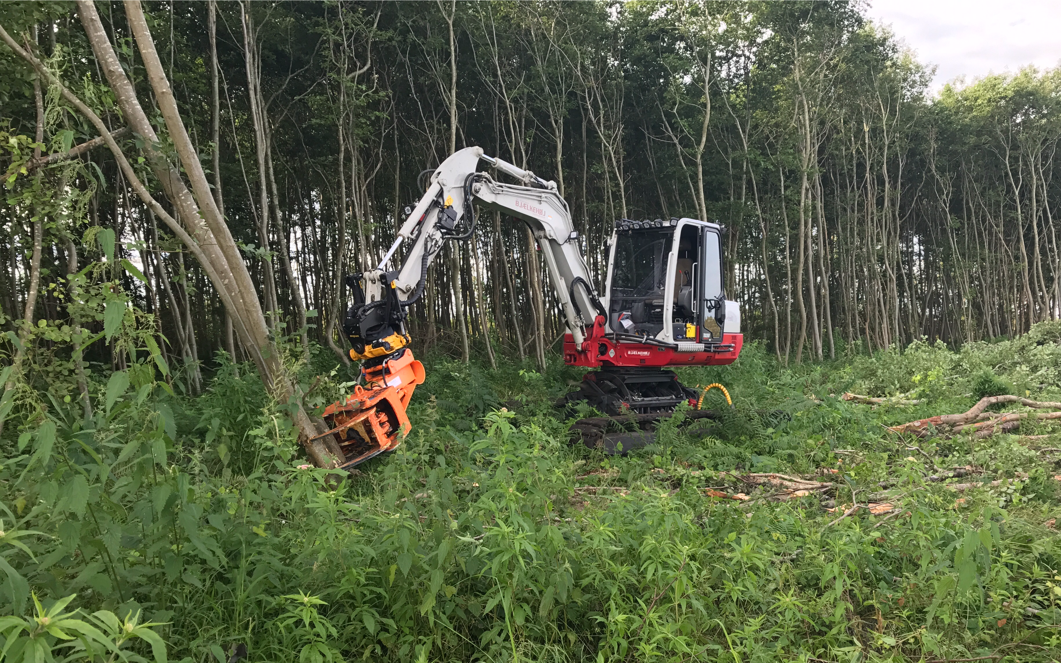 Grøftegrave der kan køre i gøfterne og på skrænter. Den kan udføre forskellige opgaver. Knusning Grøftegravning Grødeskæring Fældning af træer Beskæring af læhegn mad speerhead sav. Og meget andre Ring for mere information