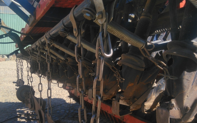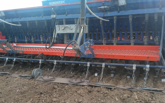 3-i-een såning af markært med udlæg og placeret start-gødning til udlægget. Arbejdsbredde 412 cm. Rækkeafstand dæksæd 24 cm Rækkeafstand udlæg+gødning 24 cm Justerbar kontra-fjeder-anordning sikrer at udlægget holdes i overfladen, selvom dæksæden skal sås dybt og selvom overfladen måtte være meget løs. Slæbe-lameller bag så-tude jævner i ønsket grad og uden at forstyrre udlægsfrøene/startgødningen. Jævne-graden varieres efter behov ved vægtklodser. Kan anvendes til andre afgrøder/kombinationer. Med yderligere frontmonteret såmaskine kan suppleres med +2 arter bredsået foran traktor. Men da uden frontpakker. Se https://farmbackup.dk/machines/4537/hoejgaard---lysabild/saaning-efterafgroeder---saamaskine-i-frontlift-