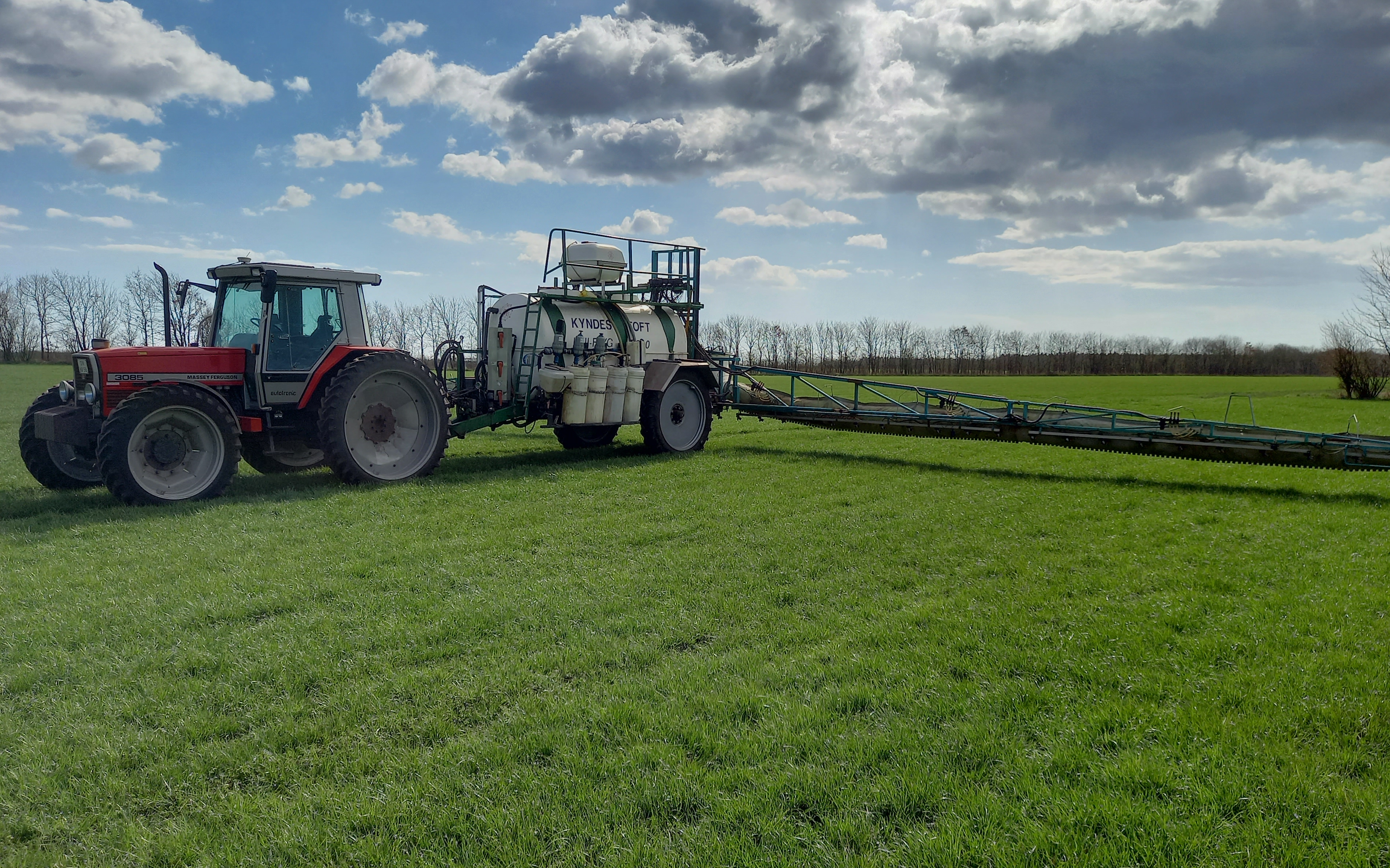 Der er luftassistering på , for bedre afsætning og nedtrængning i afgrøden.