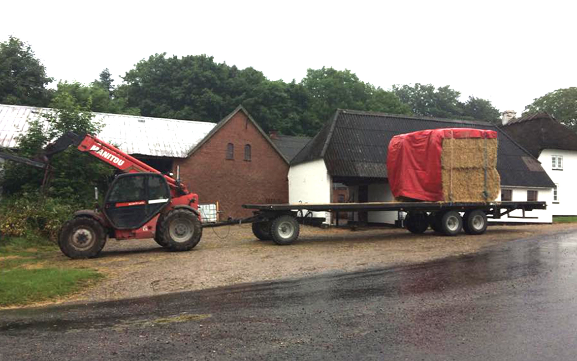 Vi tilbyder halmtransport i alle mængder med i alt to vogne. Der bliver læsset med teleskoplæsser.