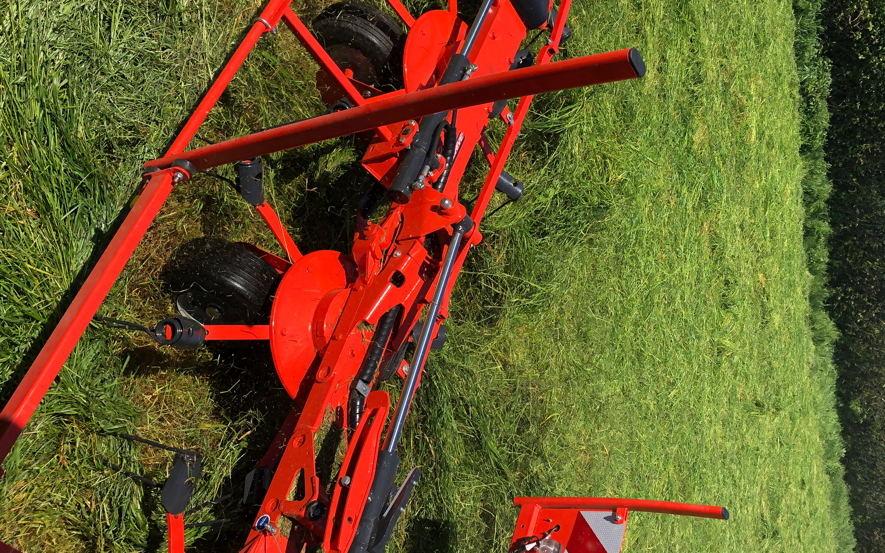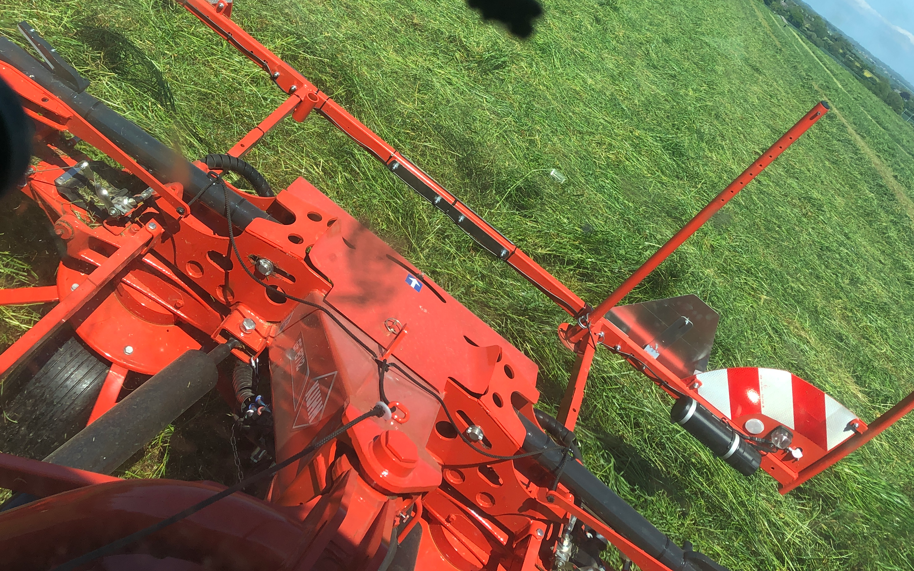 Spredning af græs med 8,7 meters spreder med kantspredning.