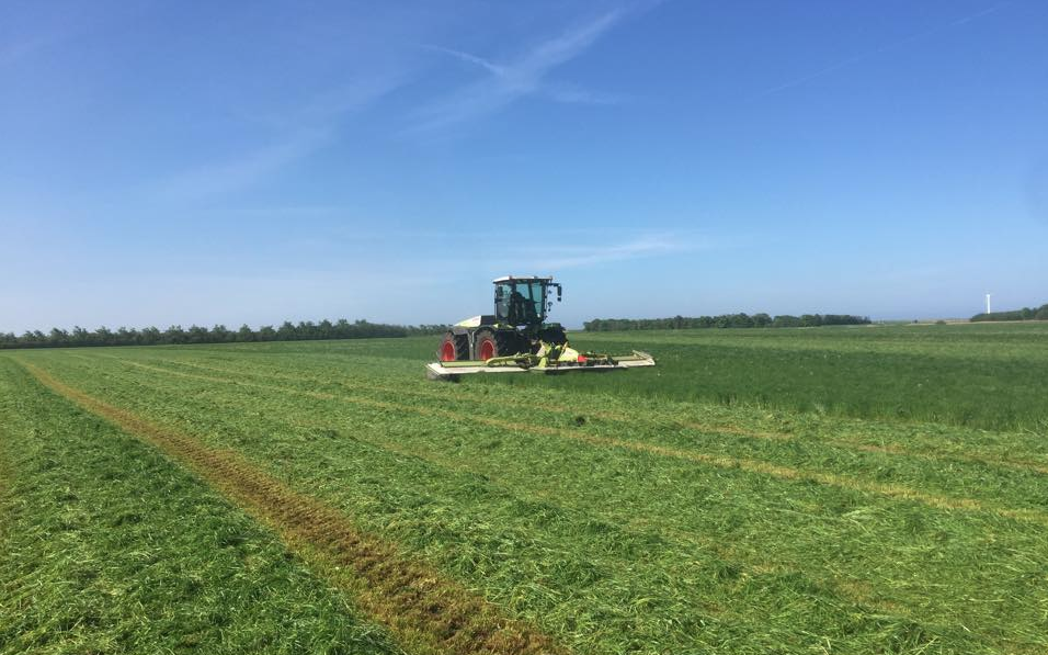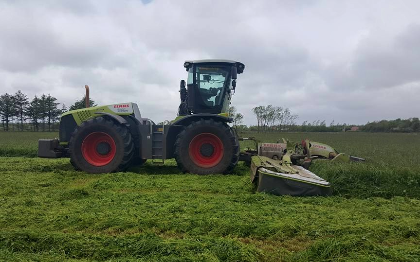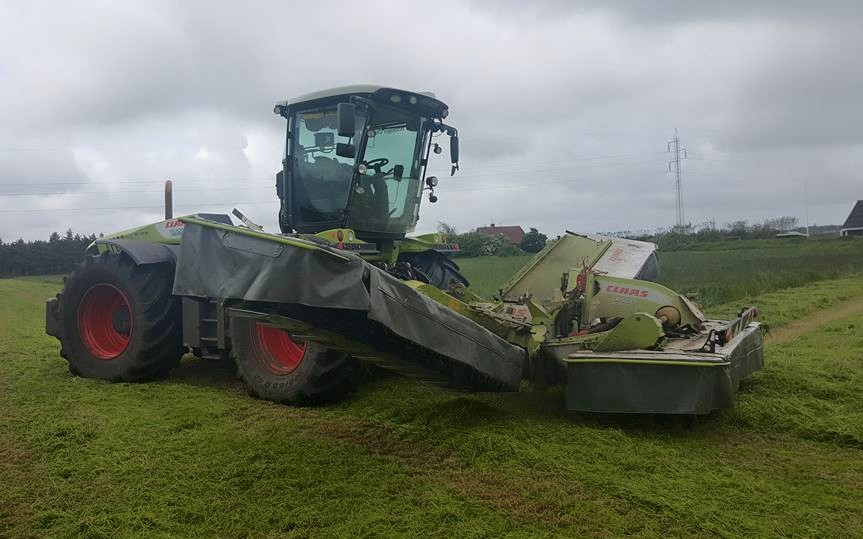 Vores Claas 9300 er en reversmonteret skårlægger på 9 meter med crimber.