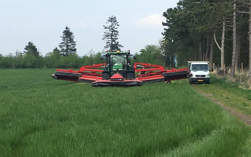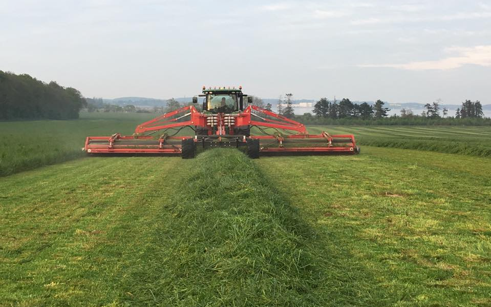 Vi har tilbyde dig en effektiv skårlægning. Vores skårlægger er med bånd, hvilket gør det nemt at opsamle græsset efterfølgende. Med en arbejdsbredde på 12 meter, fungerer den godt til faste kørespor for et merudbytte.