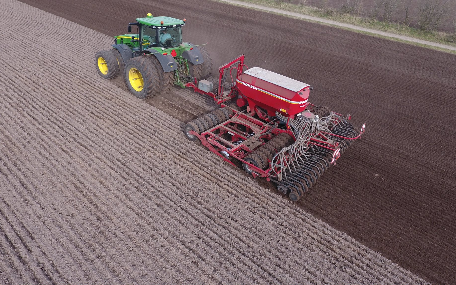 Vi tilbyder såning med vores Pronto 6 DC med frøsåudstyr. Der bliver kørst med GPS.