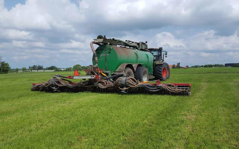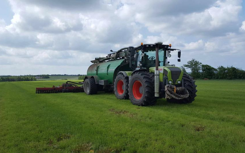 Vi tilbyder græsnedfældning med vores Vredo på 12 meter. Vi kører med en Claas Xerion med Dogwalk for at udfører arbejdet med et minimalt marktryk.