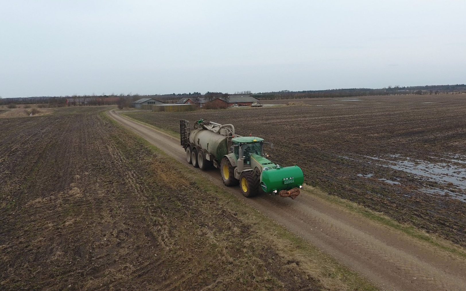 Vi kører med 2 stk 7,5 meter nedfældere. Vi kører med en SP 25 og en fronttank på 3 m3.