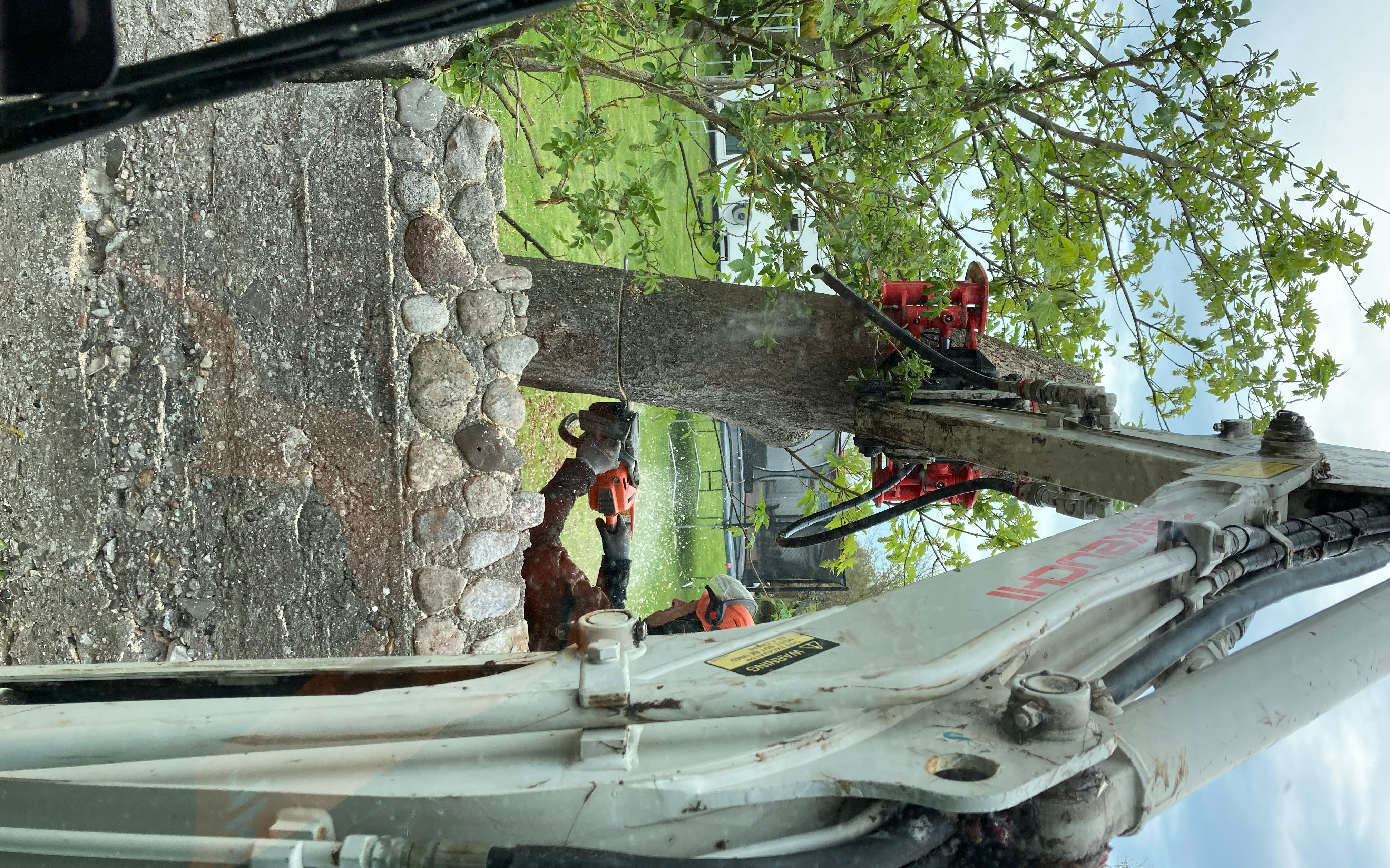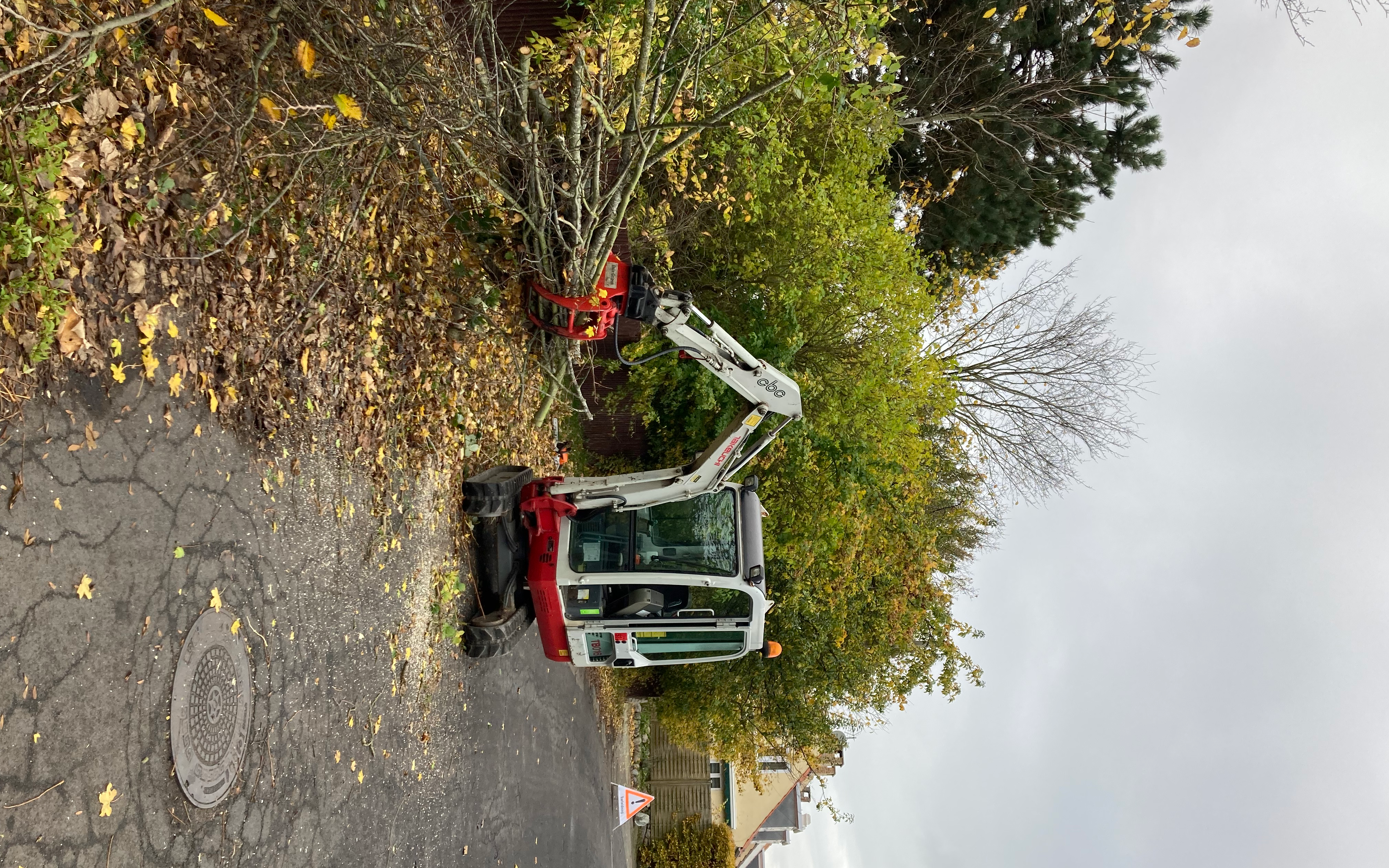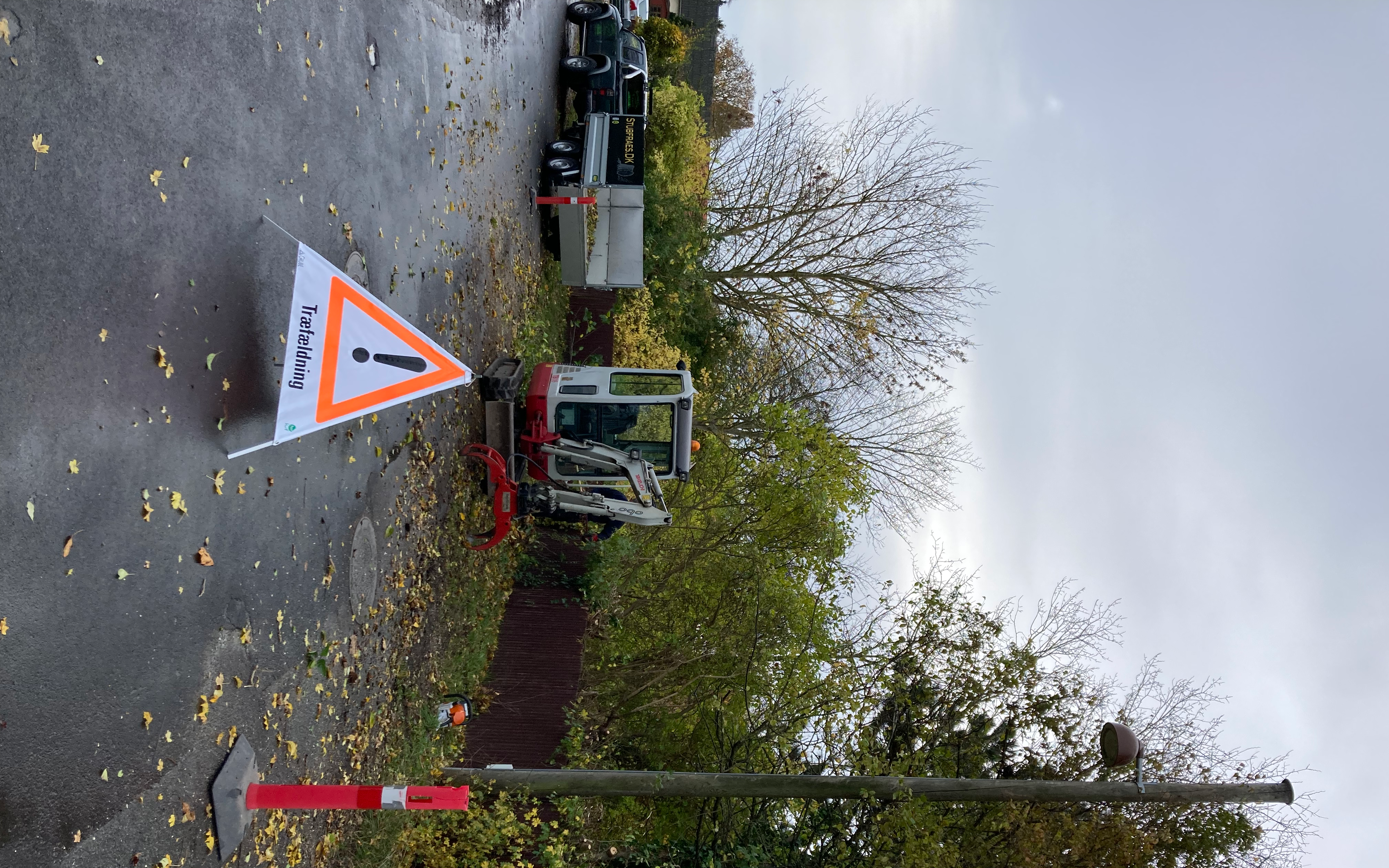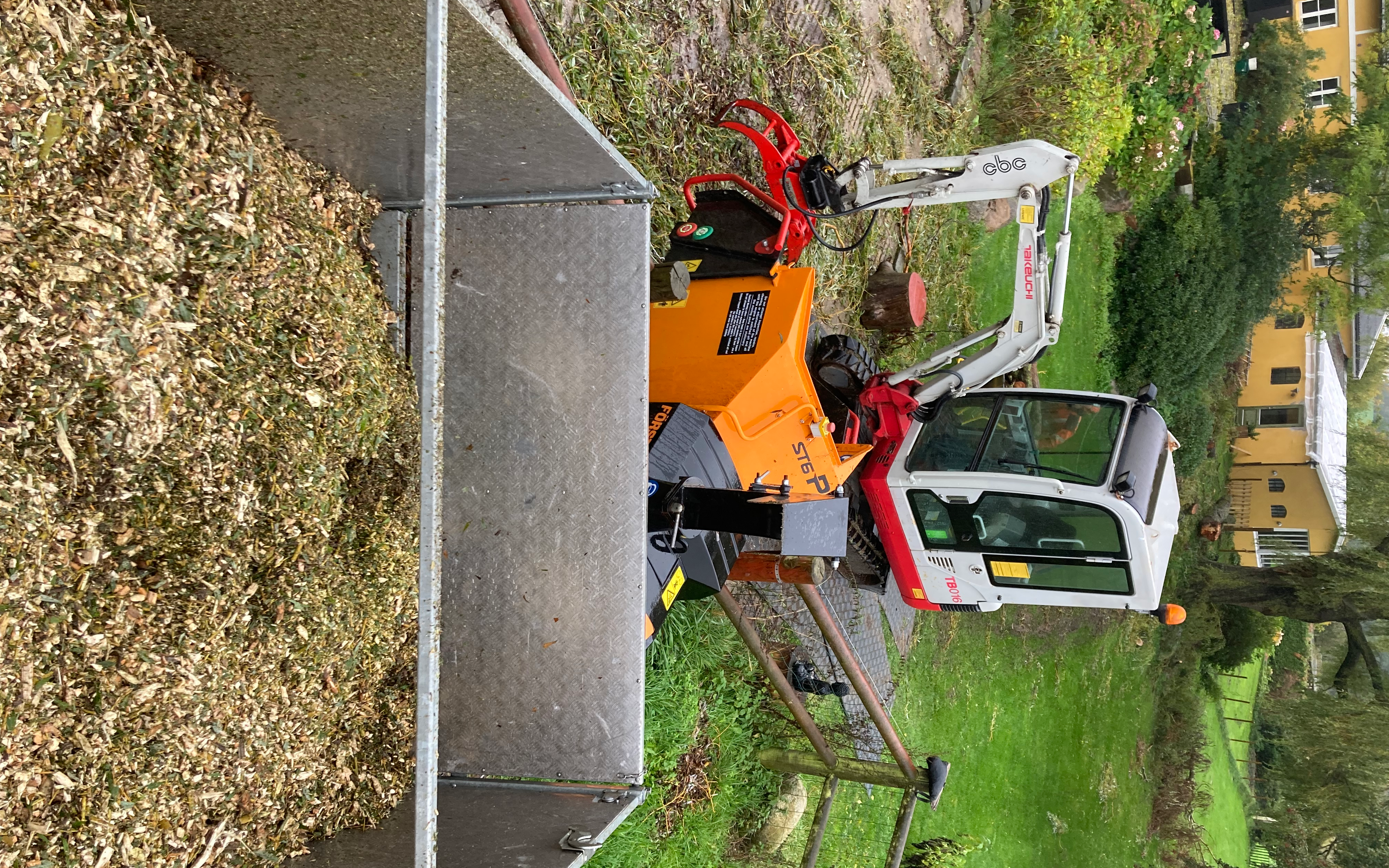 Fældning og rydning med lille gravemaskine. Flishugningen og bortskaffelse tilbydes også :-)
