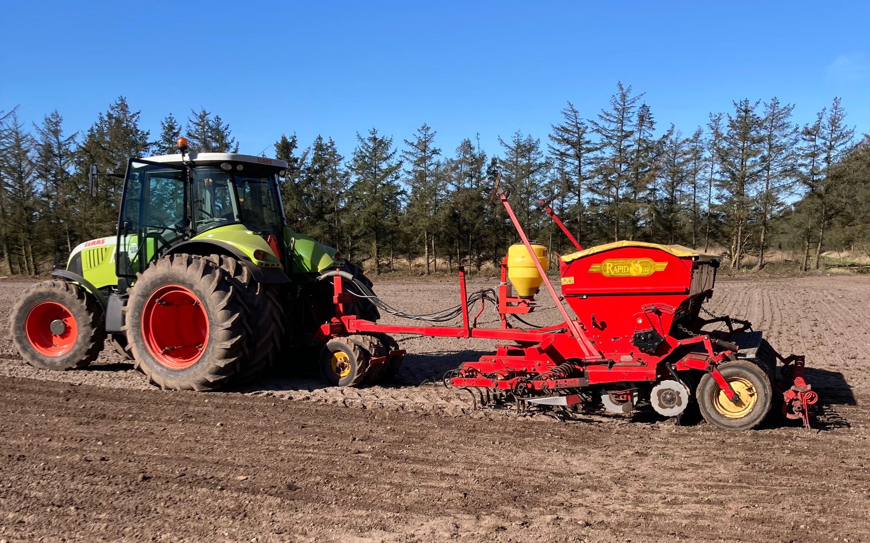 Vaderstad Rapid 4m, med mellemhjulspakker og traktor med tvillinghjul i fuld bredde. Såning direkte i stub, bearbejdet stub og pløjet mark.