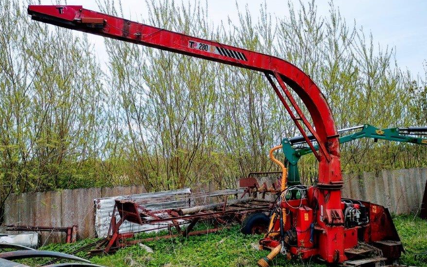 Denne flishugger udlejes uden føre, den har en kran så du nemmer kan få store pinde ind.