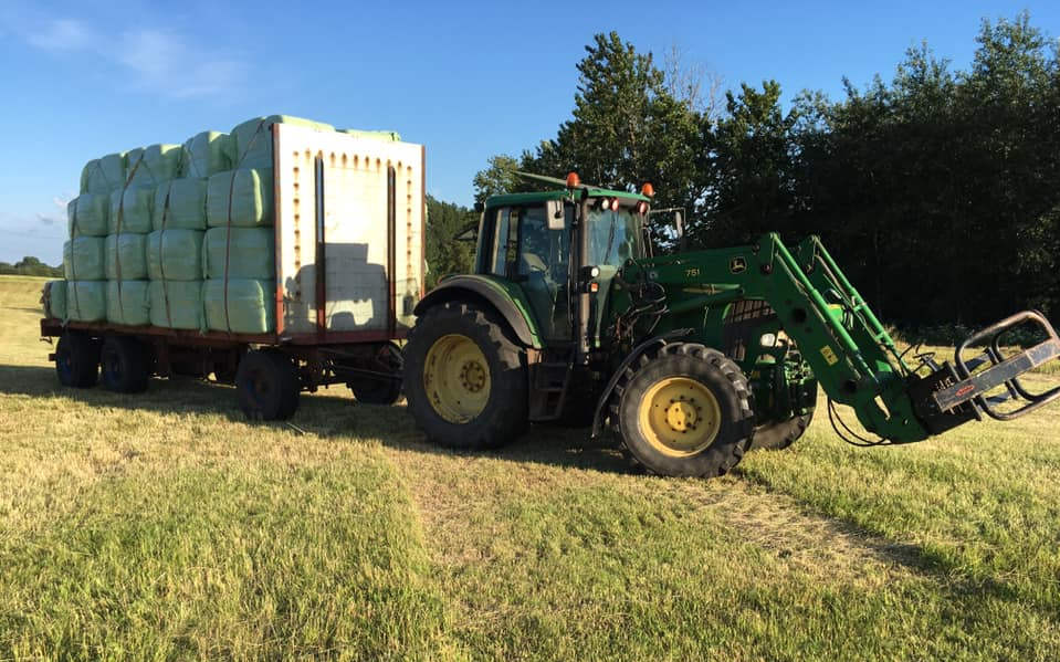Presning af halm m snitterNew Holland BB940 m Ferri snitter