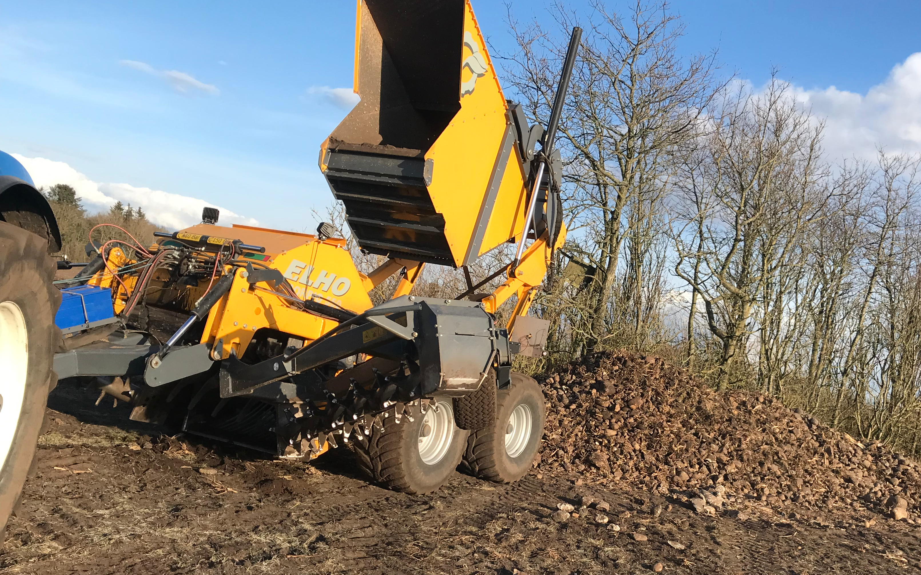 Træt af sten og rødder se her!! Vi tilbyder stensamling med ELHO stensamler i midt og vest Jylland området. Arbejdesbredde 5,5 meter, kan tage sten fra 5 til 40 cm. Tip højde på 2,7 m, så den kan læsse af i en vogn hvis det ønskes! Kapaciteten ca. 1-4 ha i timen, alt efter hvor mange sten der er.
