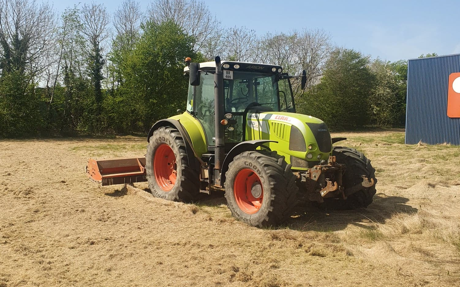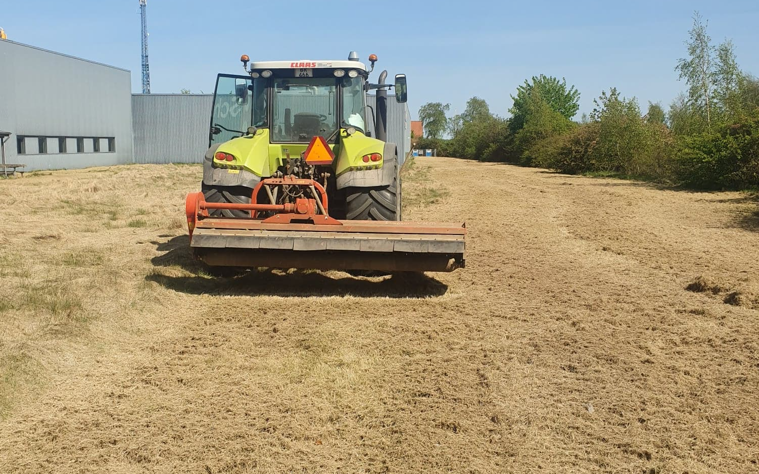 Græsklipning/brakpudsning med Kuhn 320 slagleklipper, med tromle bagpå. På nogenlunde jævnt terræn kan der klippes ned til ca. 5 cm stubhøjde. Kan pulveriserer græs og smågrene samt andet organisk materiale. Særlig velegnet til afpudsning af frøgræsmarker. Udkørsel sker MED chauffør.