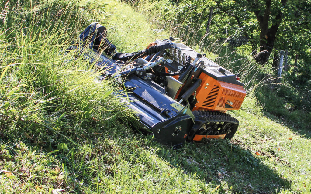 lille kompakt robot til de steder der er meget trængt og ideel til vådområder hvor der ikke sker nogle køreskader og så på skrænter op til 50 graders stigning