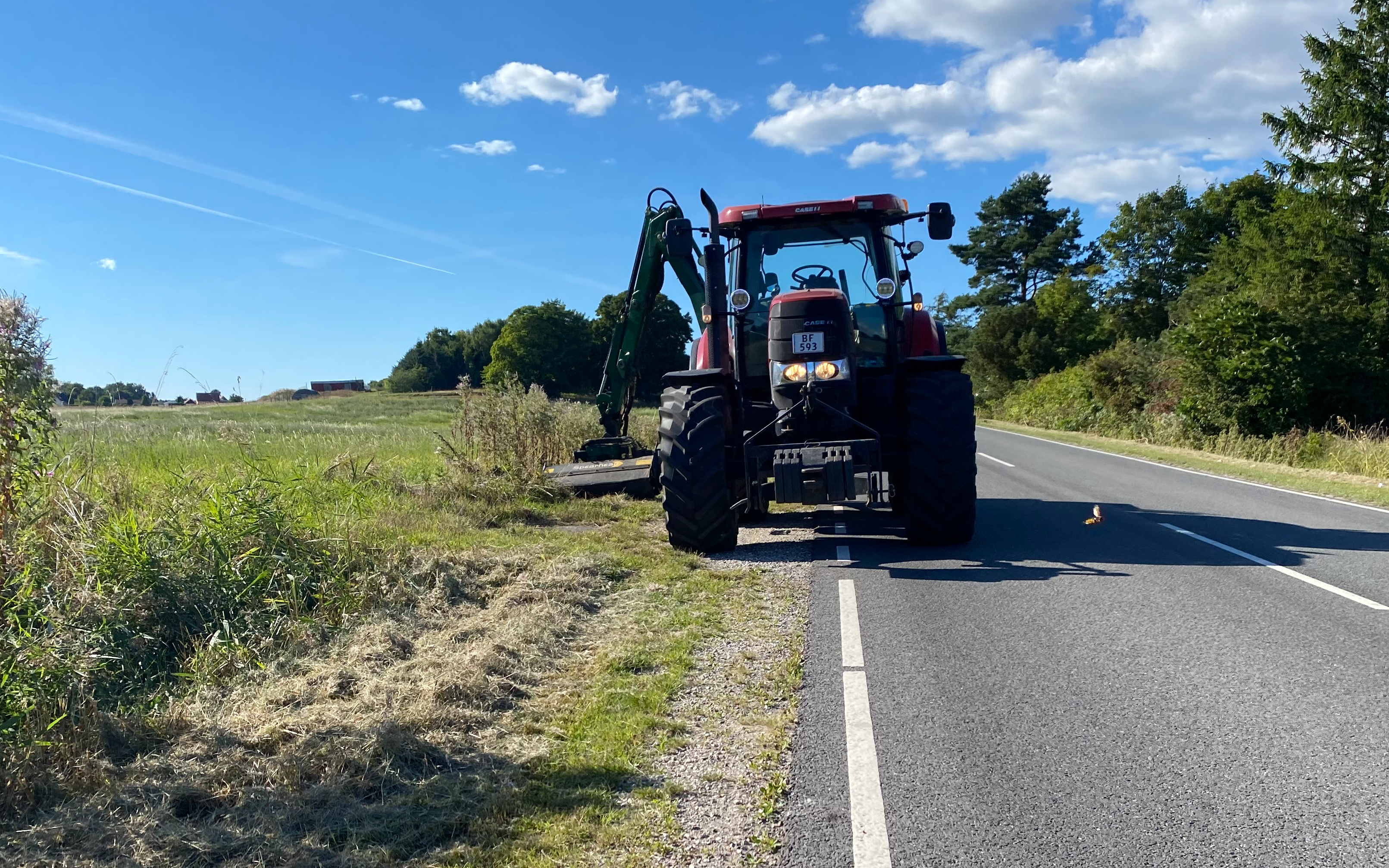 Jeg køre ud og klipper rabatter og grøfter i det meste af Nordjylland, jeg køre med en Case Puma 125, en lille traktor som ikke vejer så meget, derfor er den vel egnet til at køre ned i engen og slå, vandløb. eller andet.