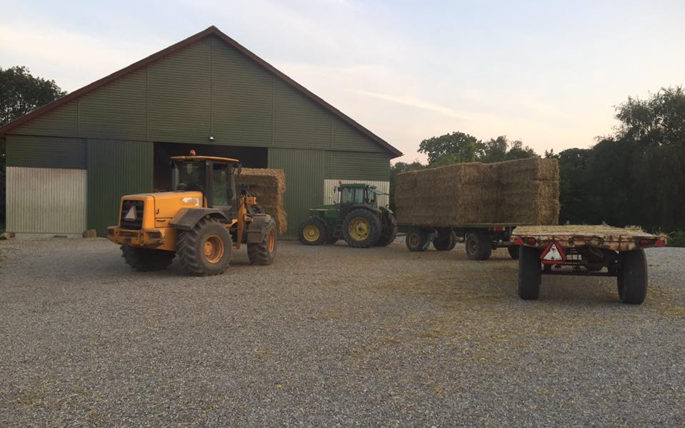 Vi tilbyder hjælp med transporteringen af halmballer fra mark til lade.