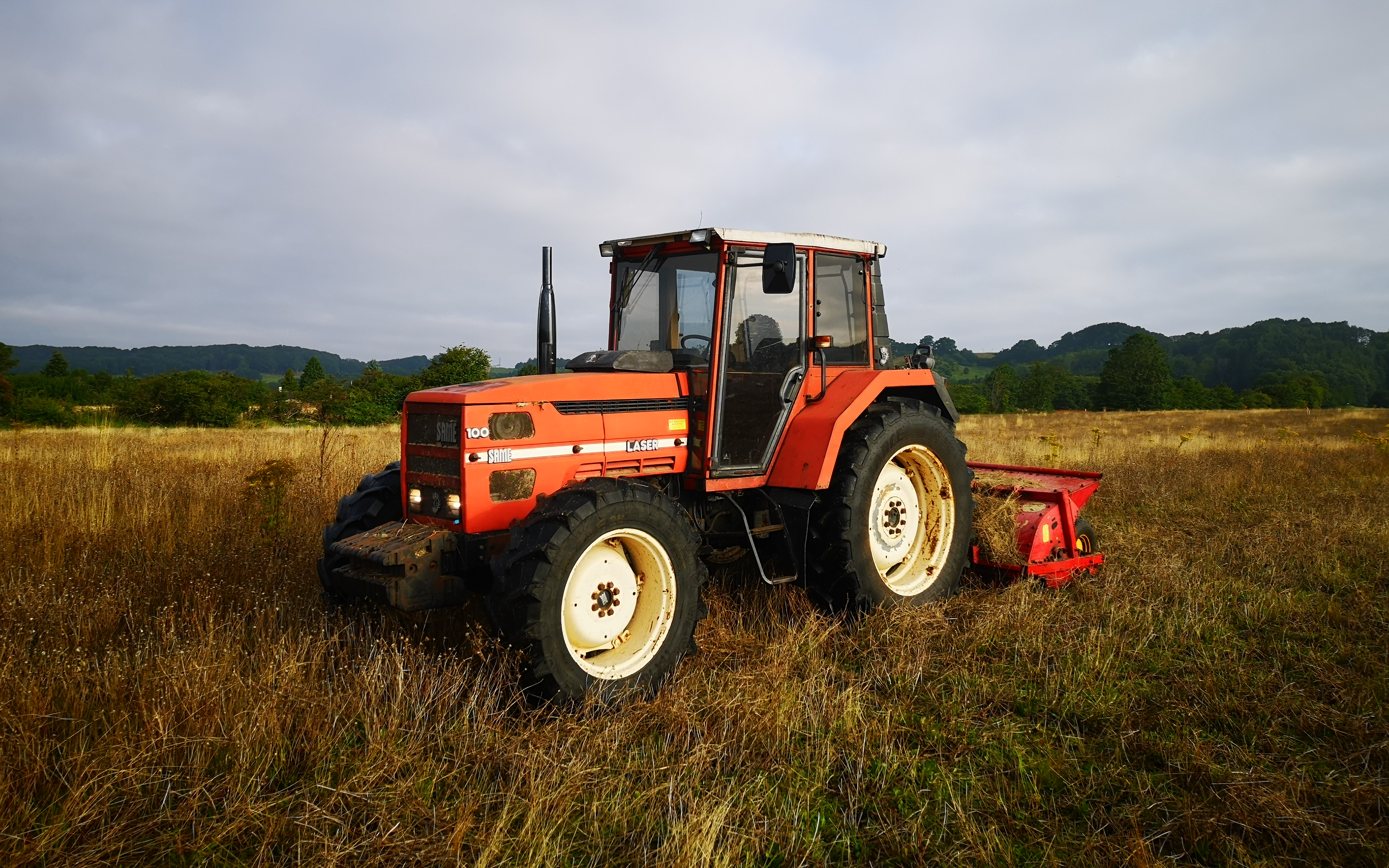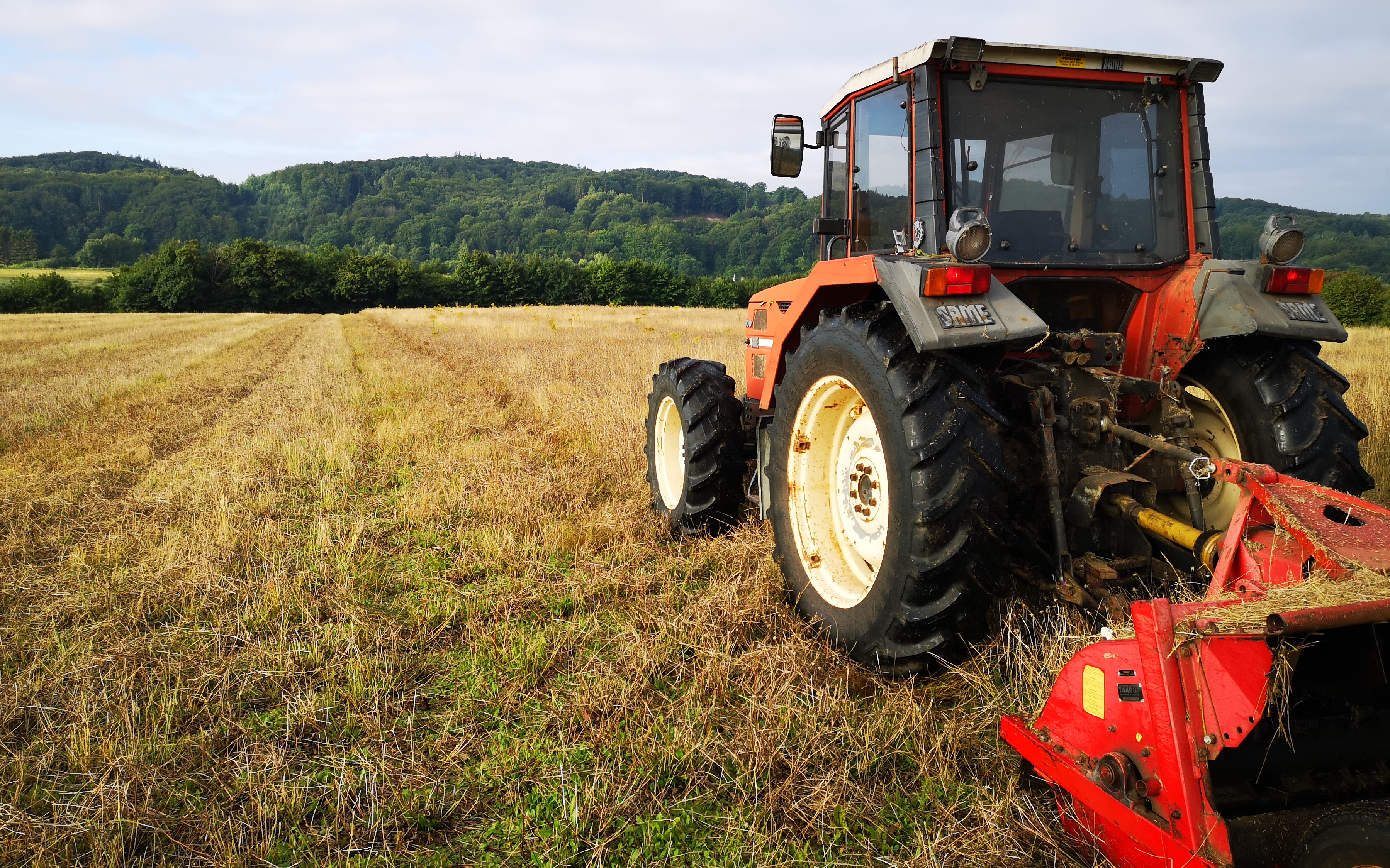 Slagleklipper monteret med Y-knive, og klarer også mindre træer og buske. God terrængående traktor.