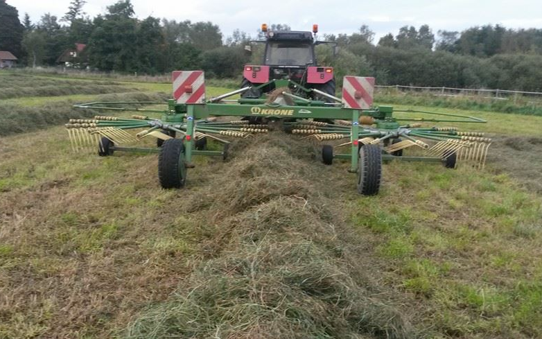 Vi tilbyder at rive dit halm og græs sammen med vores Krone rive.