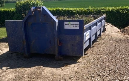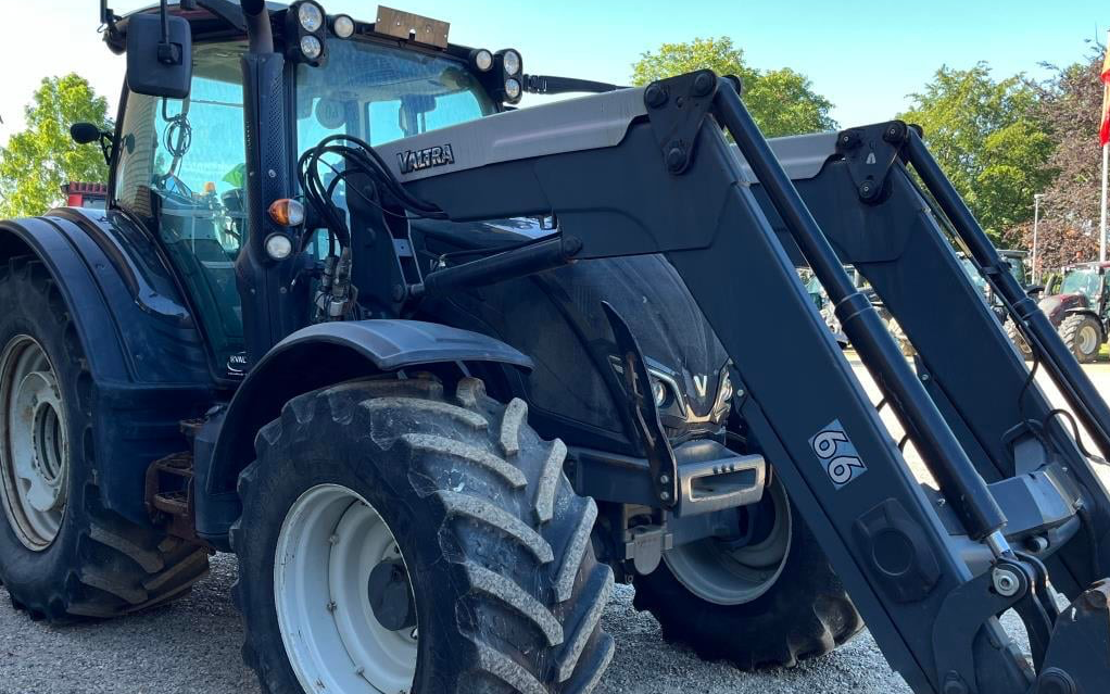 Med frontlæsser, klo, skovl. Har krybegear og 40 km gearkasse.